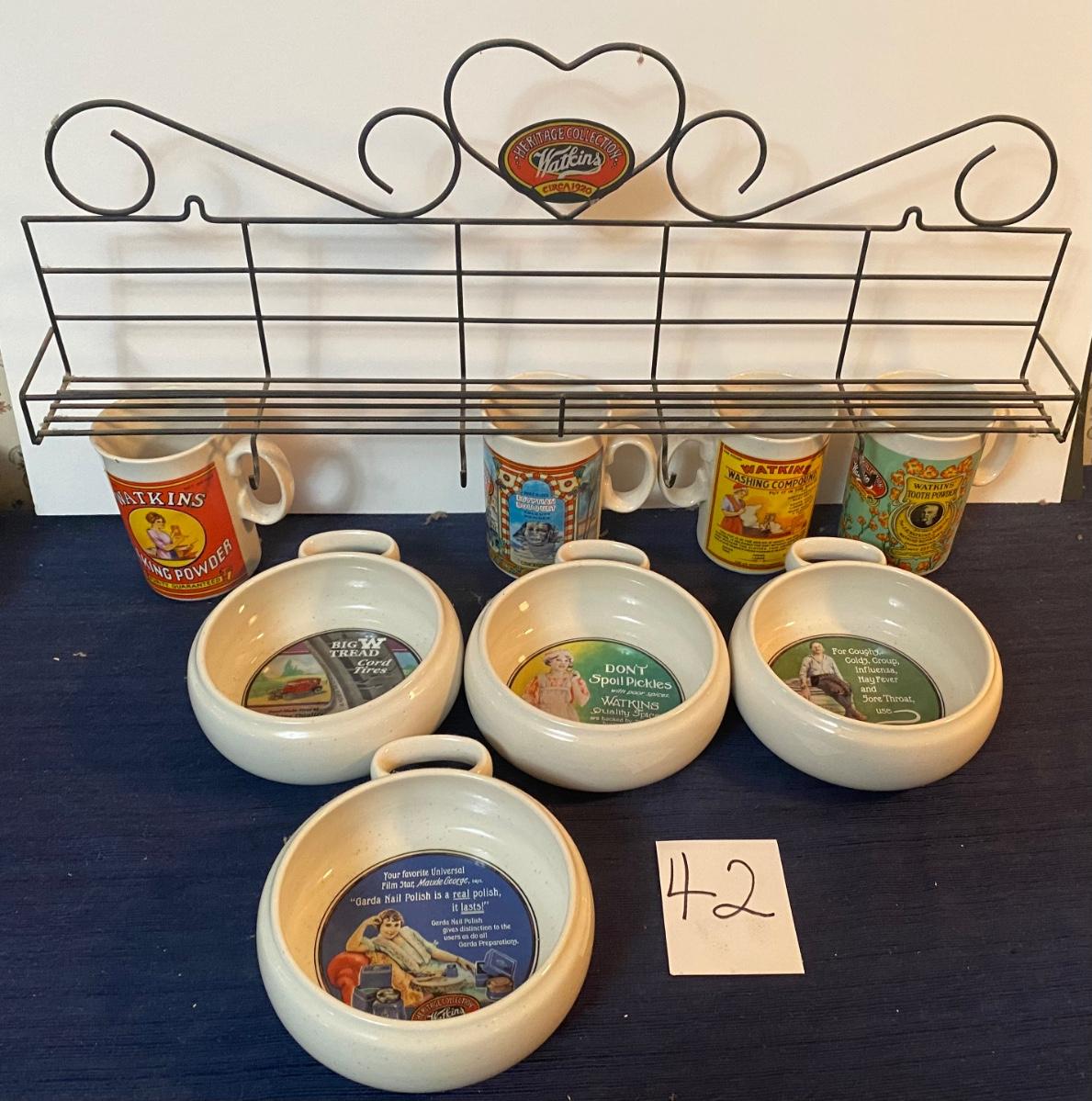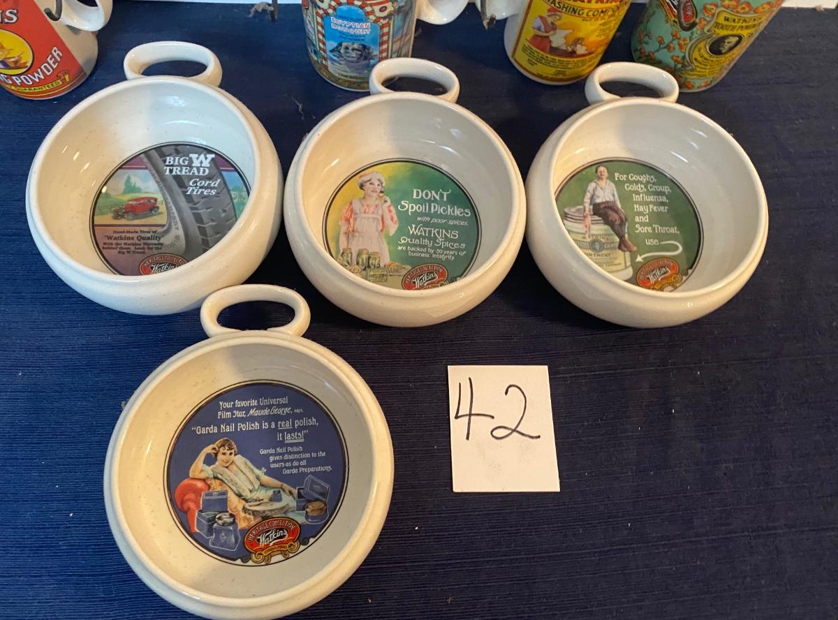 Vintage Watkins Heritage Collection Soup Bowls and Cups