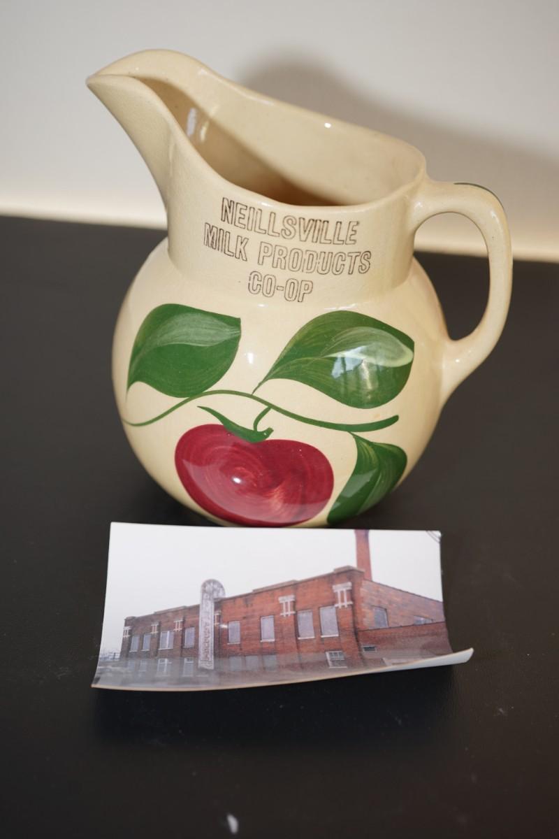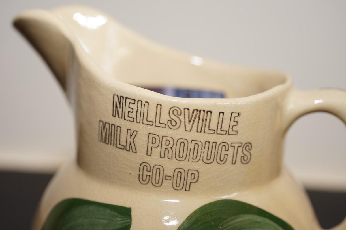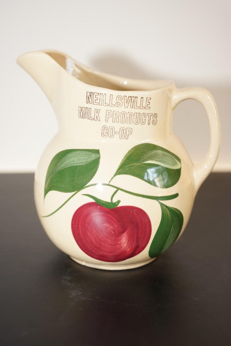 VINTAGE WATTSWARE ADVERTISING PITCHER #16 " NEILLSVILLE MILK PRODUCTS 6-OP