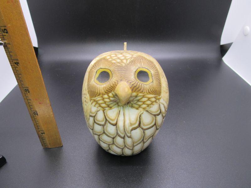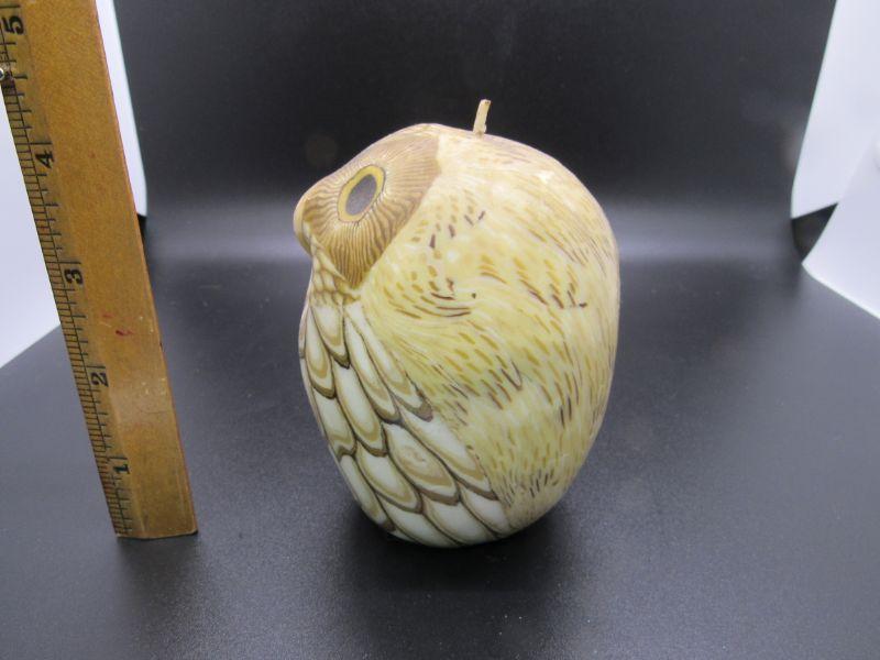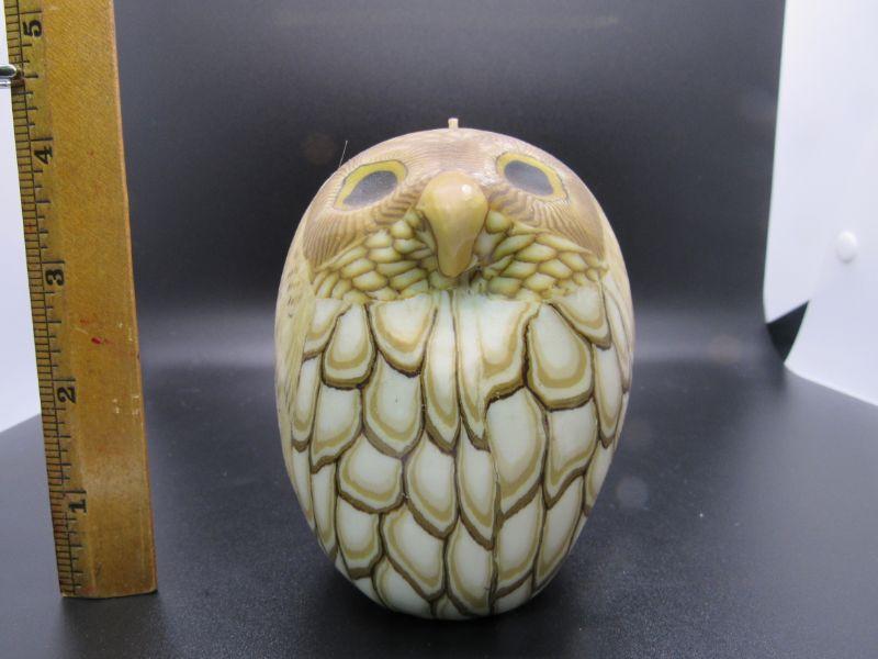 Vintage decorative wax art candle shaped/designed to look like an owl. Unused. Displays great. 4" size. #001-0025