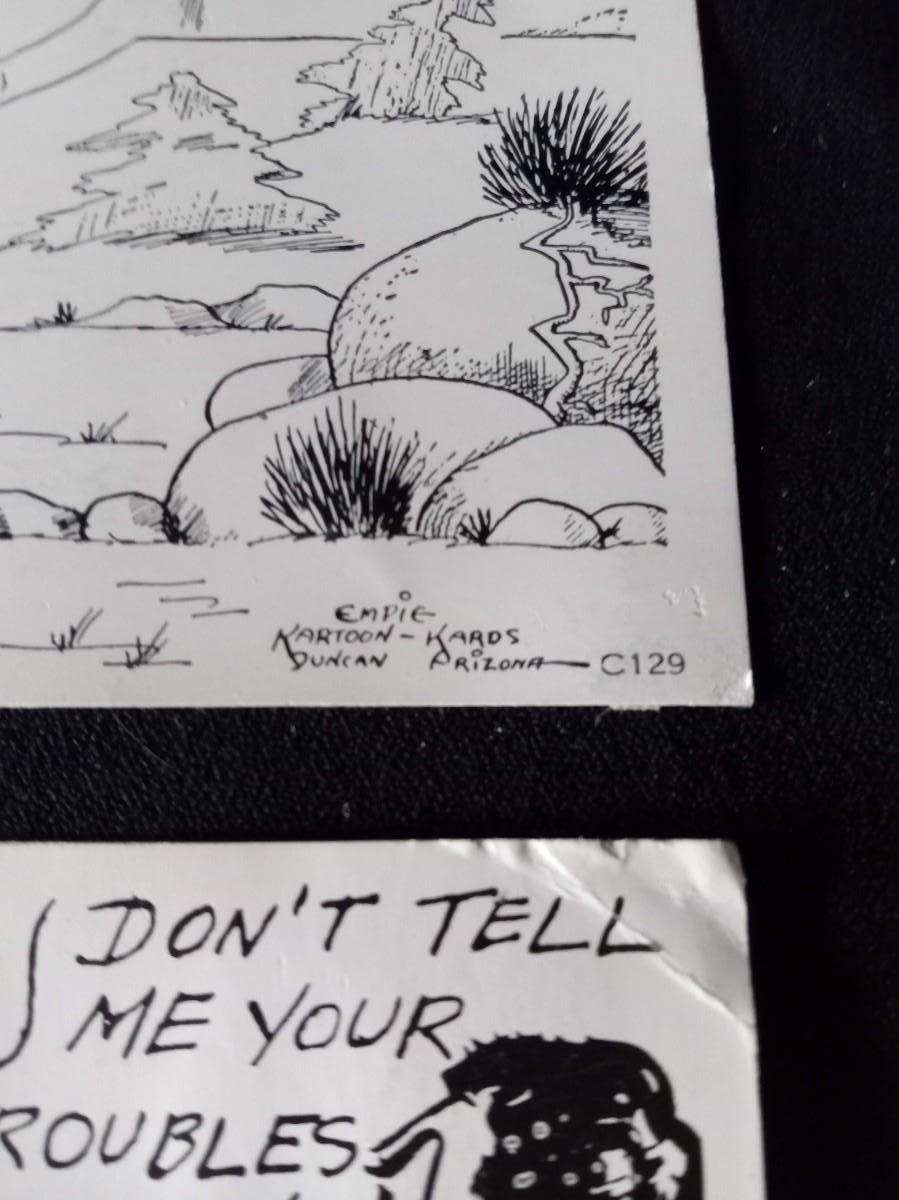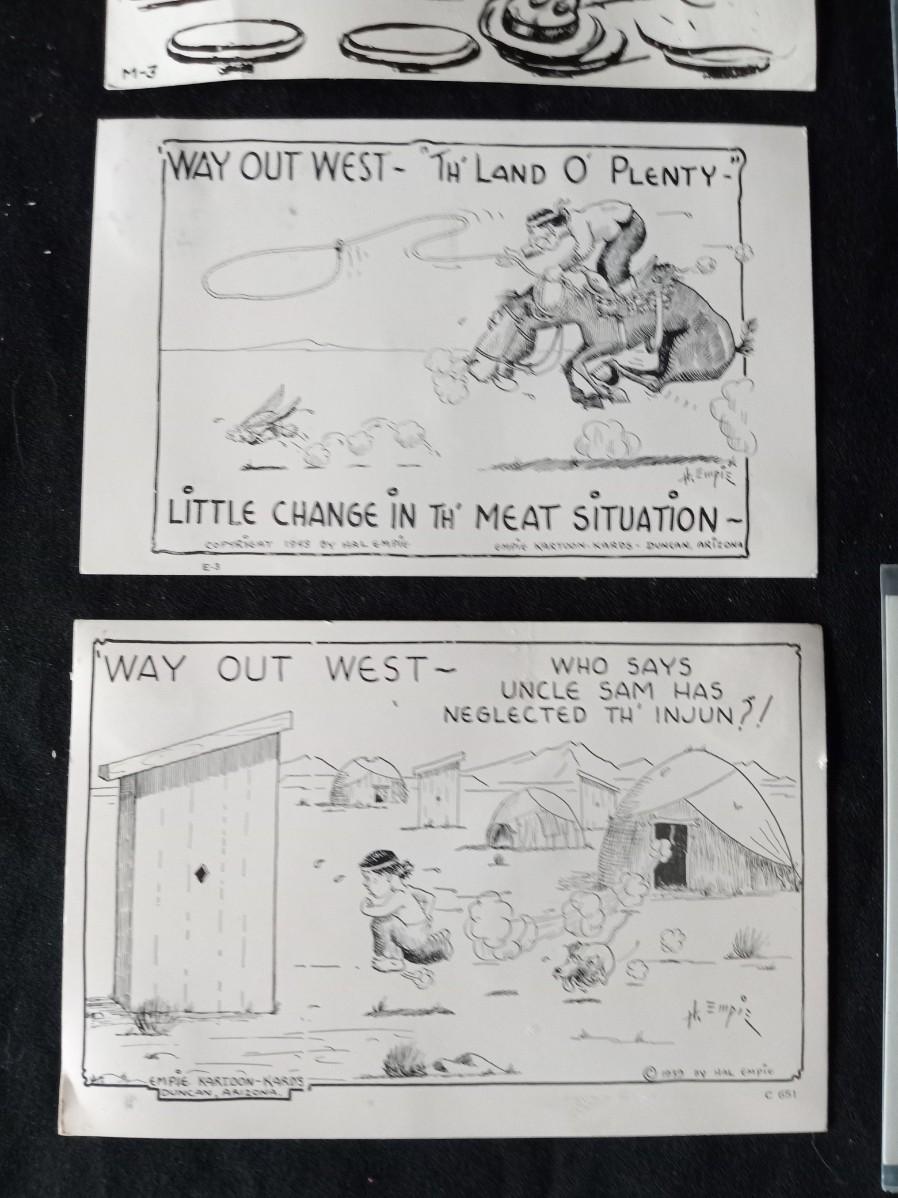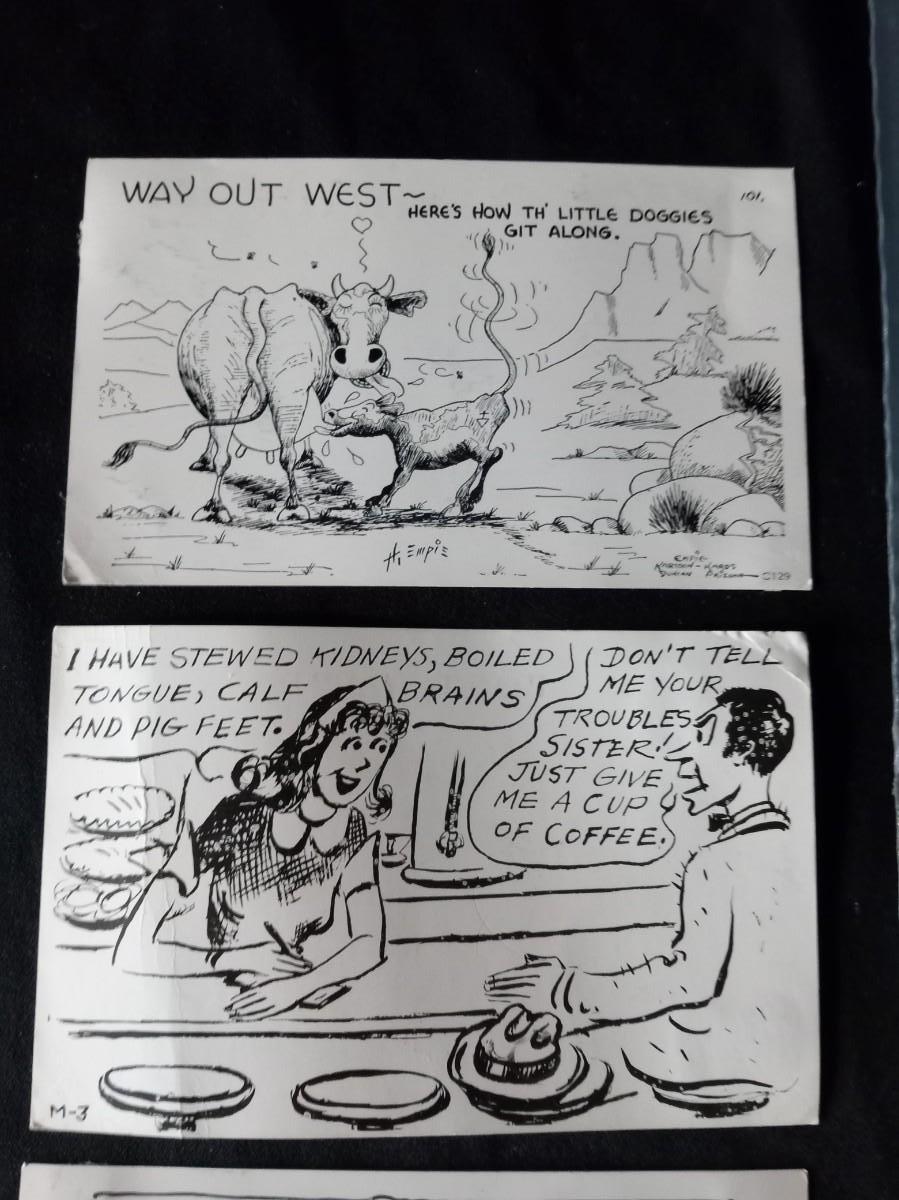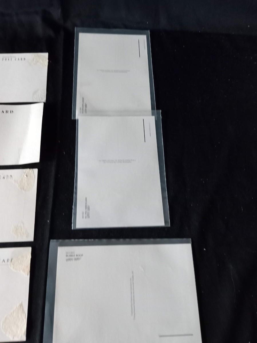 THE WAY OUT WEST POSTCARDS WERE ONCE GLUED ONTO A PAPER SURFACE AND MARKS REMAIN