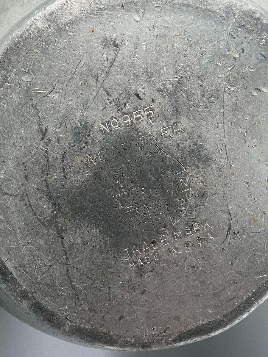 Vintage Wear-Ever Aluminum Co. Stamped Water Pitcher, there is some vintage wear to the pitcher, but there is no significant damage and is in overall good displayable condition. Check pictures for more details and for sizing.