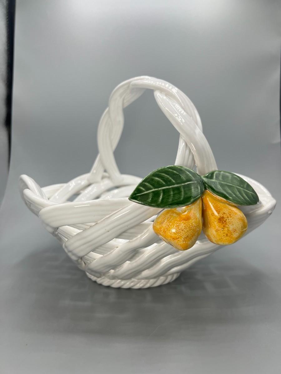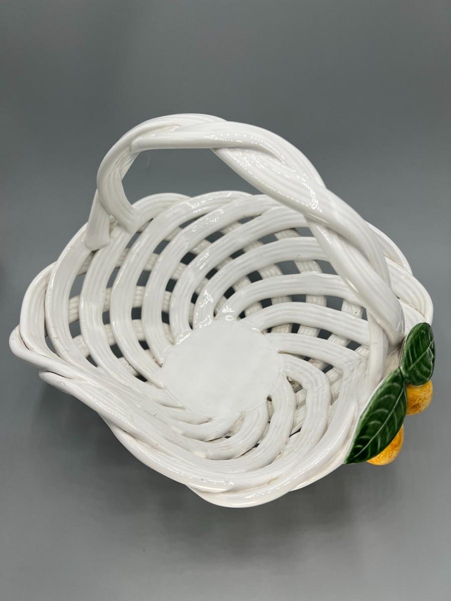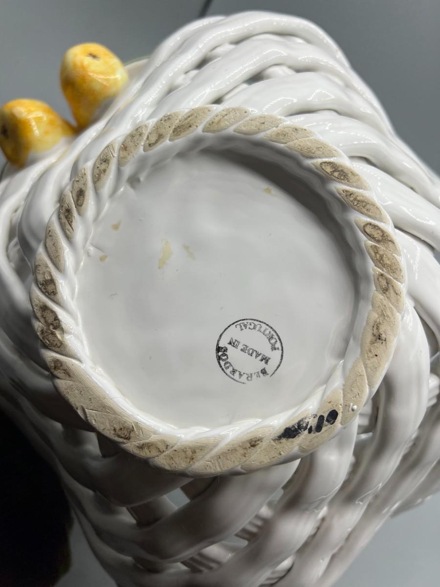 Vintage Weaved Ceramic Made in Portugal Lemon Fruit Motif Pottery Art Basket