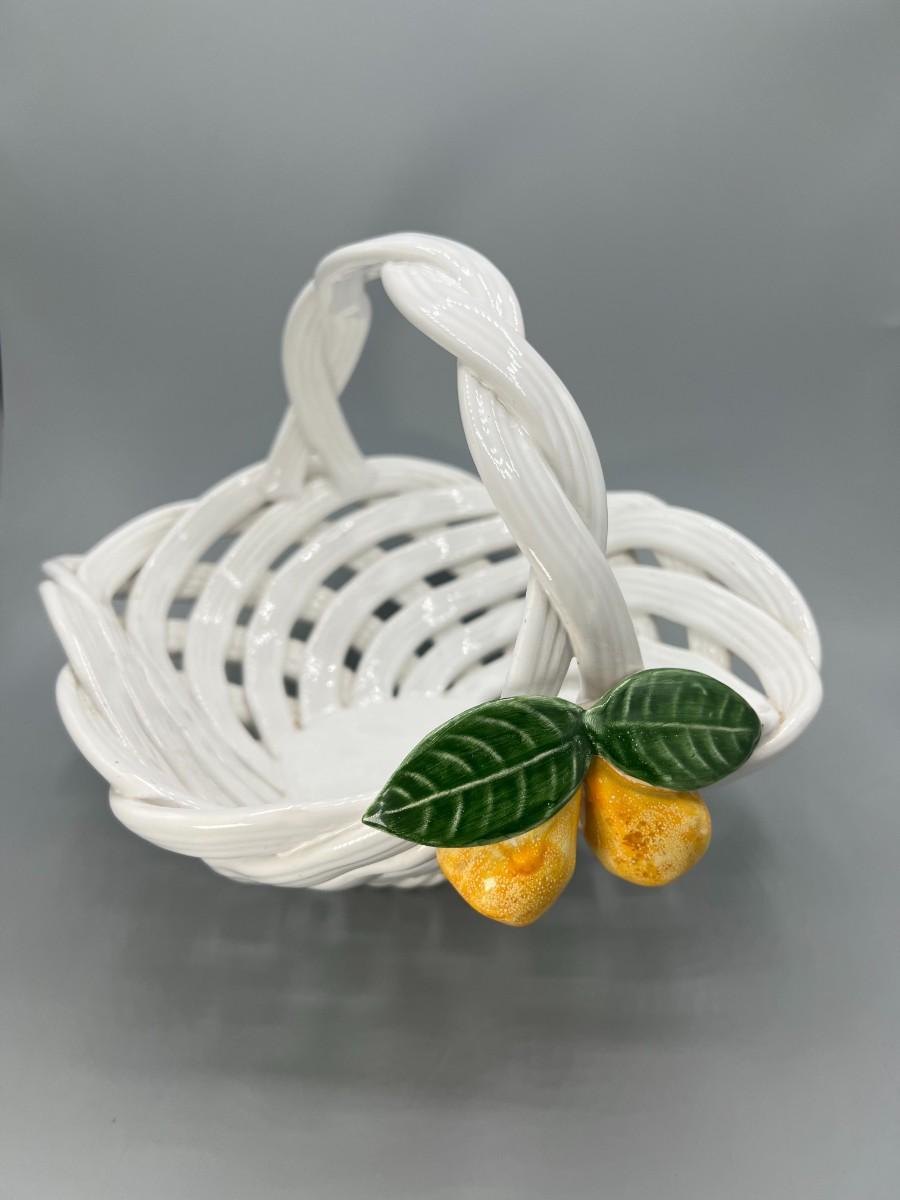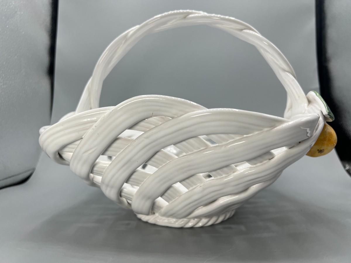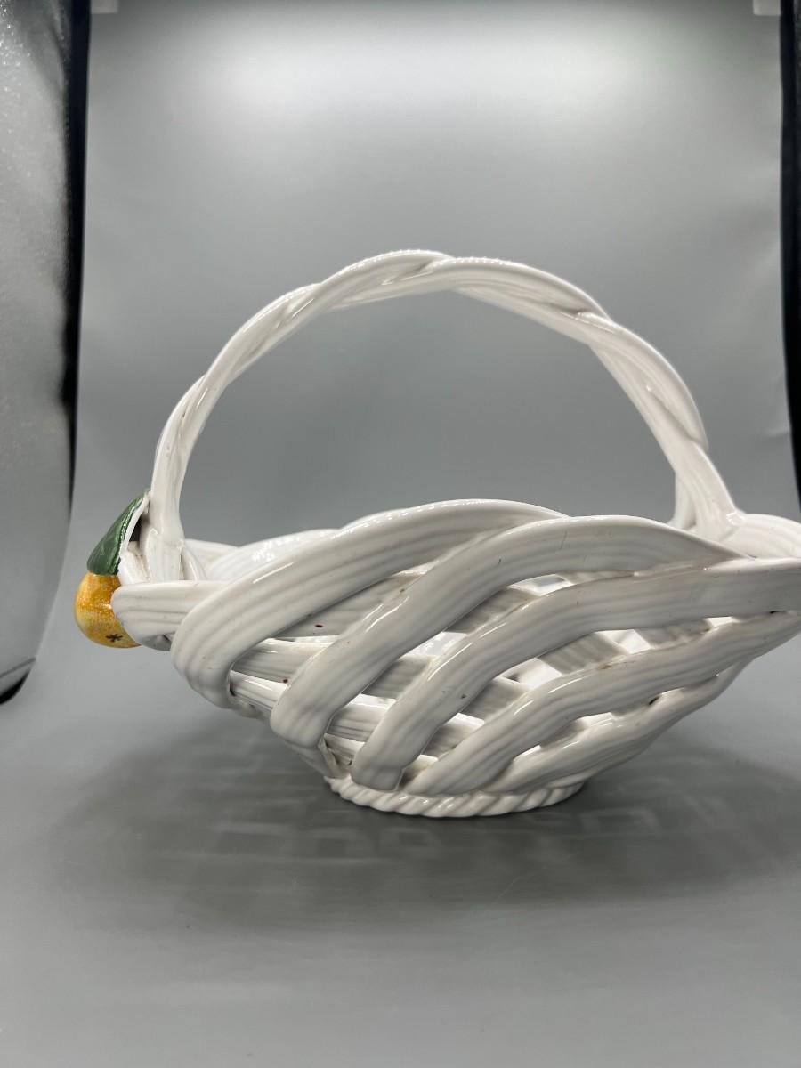 Vintage Weaved Ceramic Made in Portugal Lemon Fruit Motif Pottery Art Basket