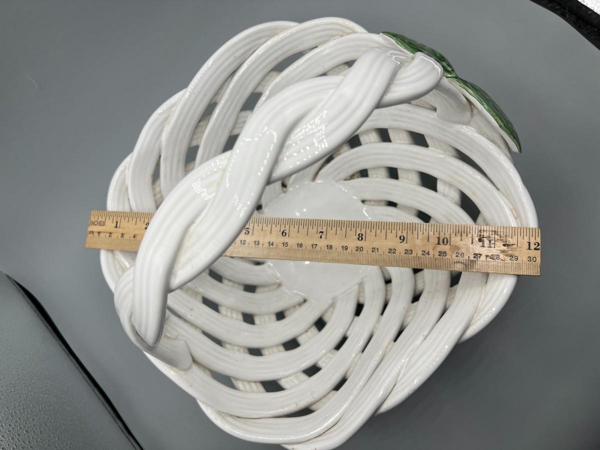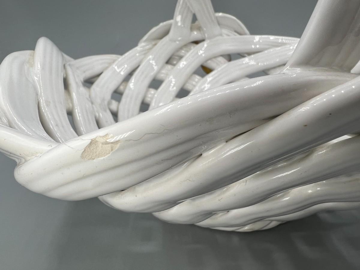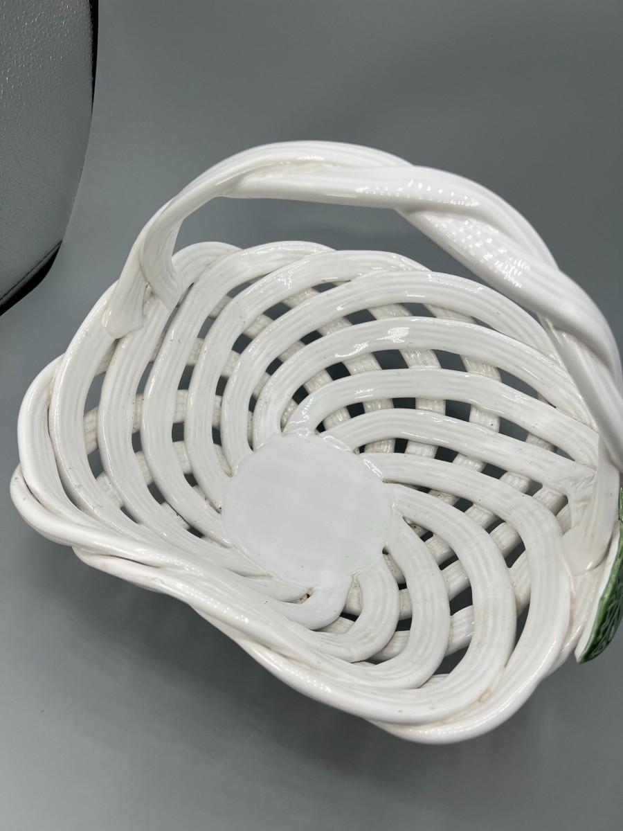 There is some light chipping to the ceramic basket, but there is no significant damage and is in overall good collectible or displayable condition. Check pictures for more details and for sizing.