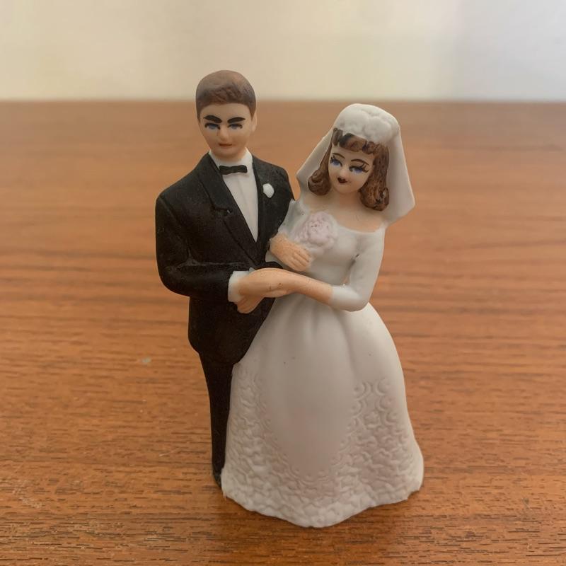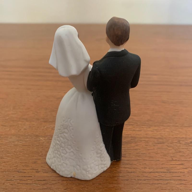 Bride and Groom porcelain wedding cake topper, 4 1/4" tall.