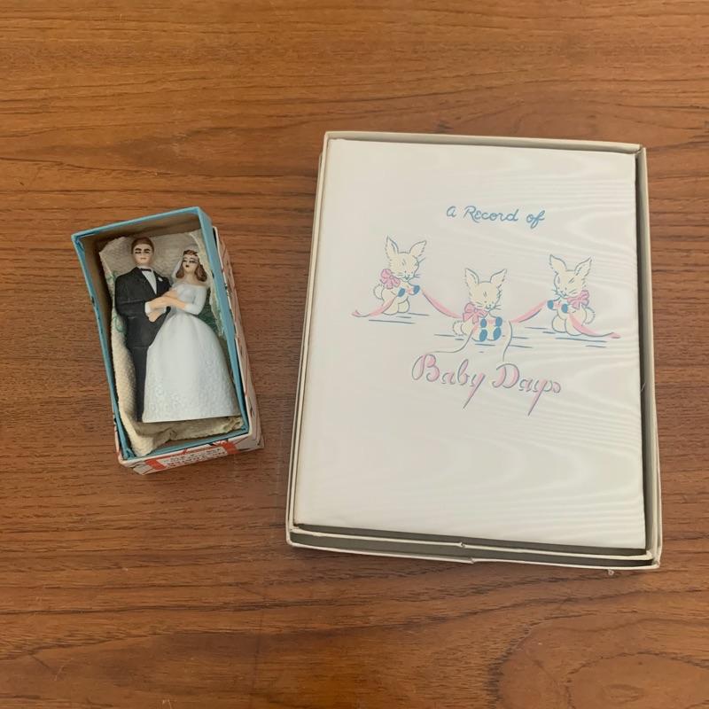 Lot 18 - Vintage Wedding Cake Topper and Baby Book