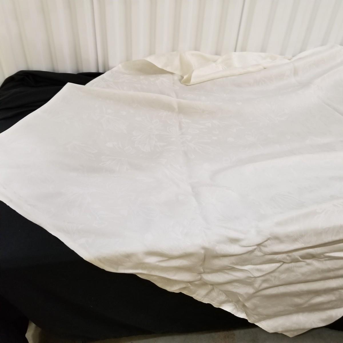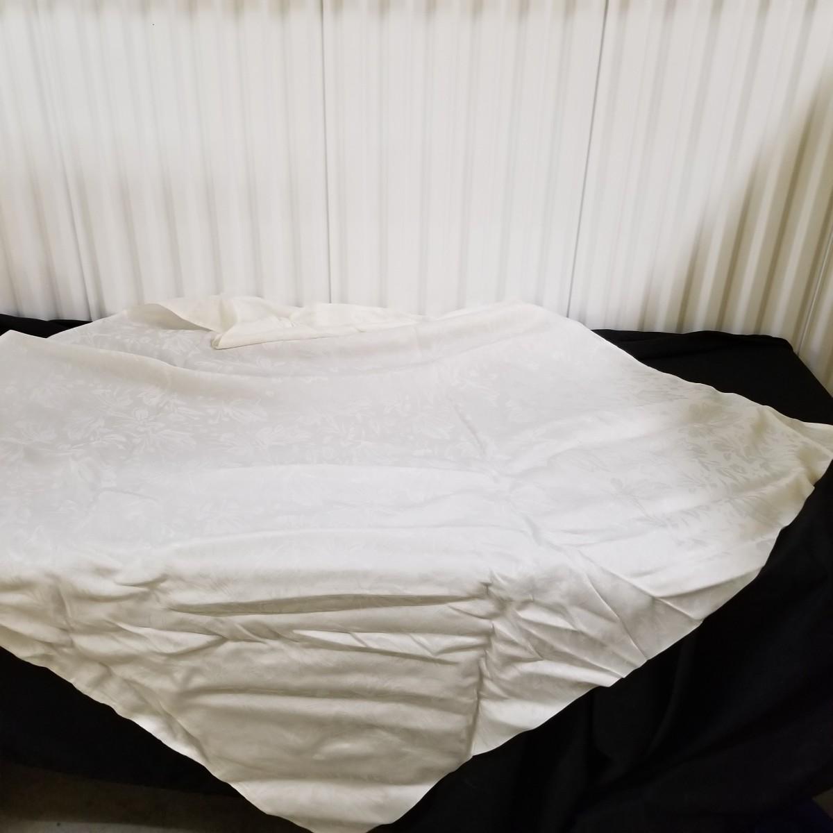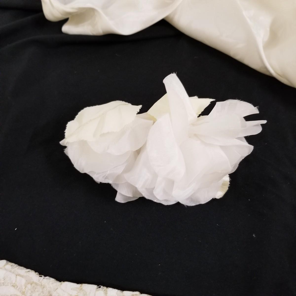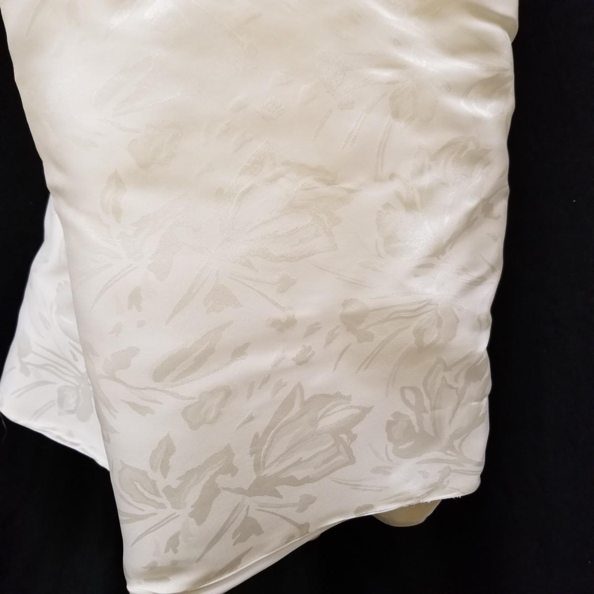 A beautiful vintage dress, this ivory colored piece has cap sleeves and a detachable train. Made in England by D.P. Designs, the dress and train are made of silk, viscose and nylon. The train measures 6' x6'. There is also a hairpiece and detachable waistband. In original storage box. See photos for details. Shipping available.