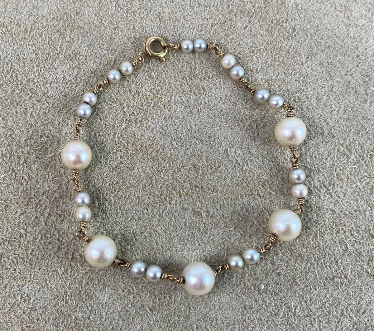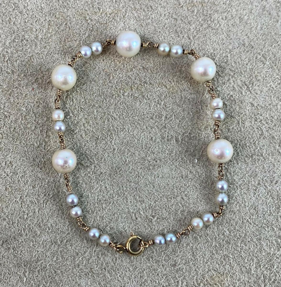 vintage wedding jewelry PEARL & GOLD BRACELET flower girl bridesmaid