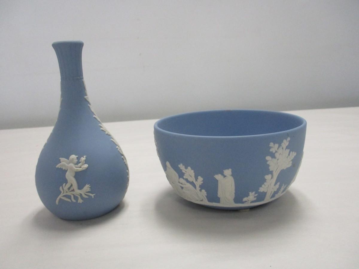 Vintage Wedgewood Blue Jasperware Neoclassical Bowl & Vase