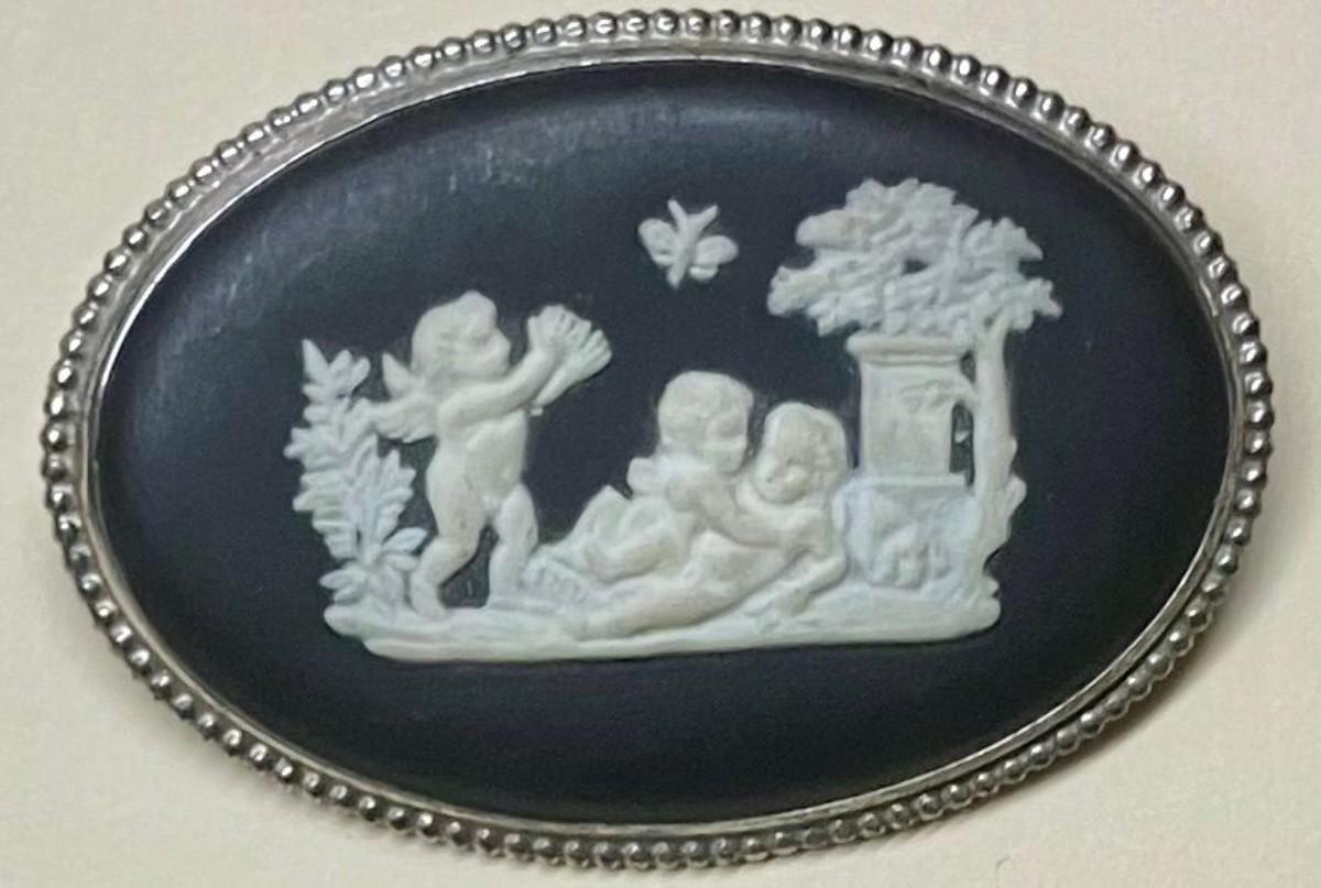 Vintage Wedgwood Black Jasperware Cameo Brooch