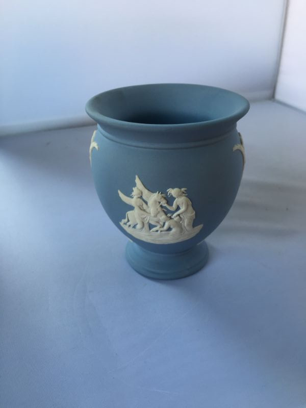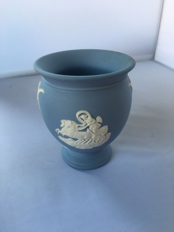 Vintage Wedgwood England blue and white jasperware vase