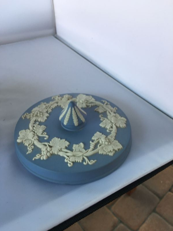 Vintage Wedgwood England jasperware blue and white candy dish