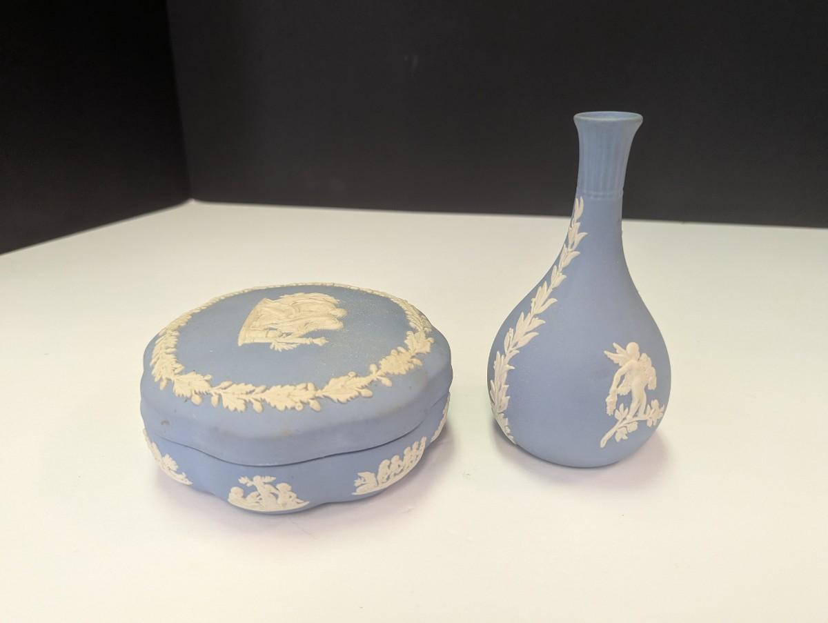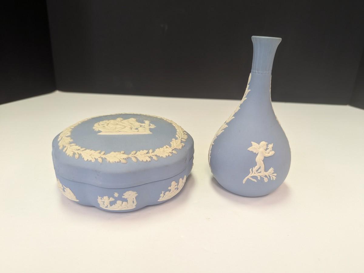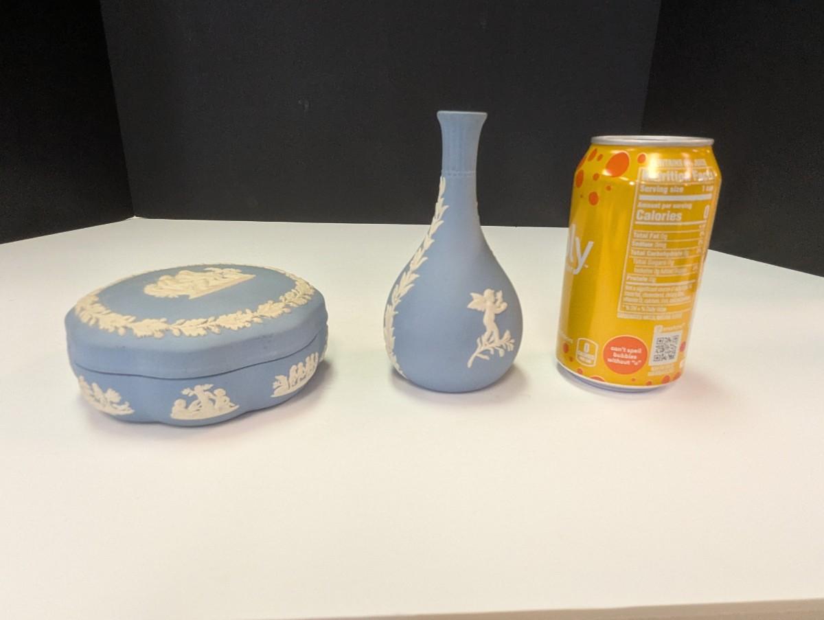 Vintage Wedgwood Jasperware Blue Container #2 & Vase