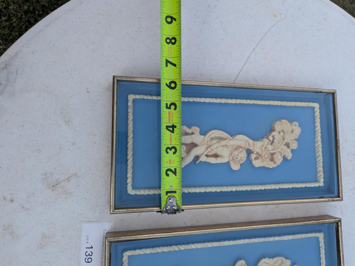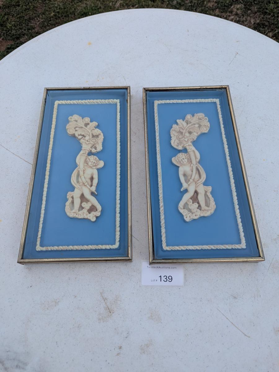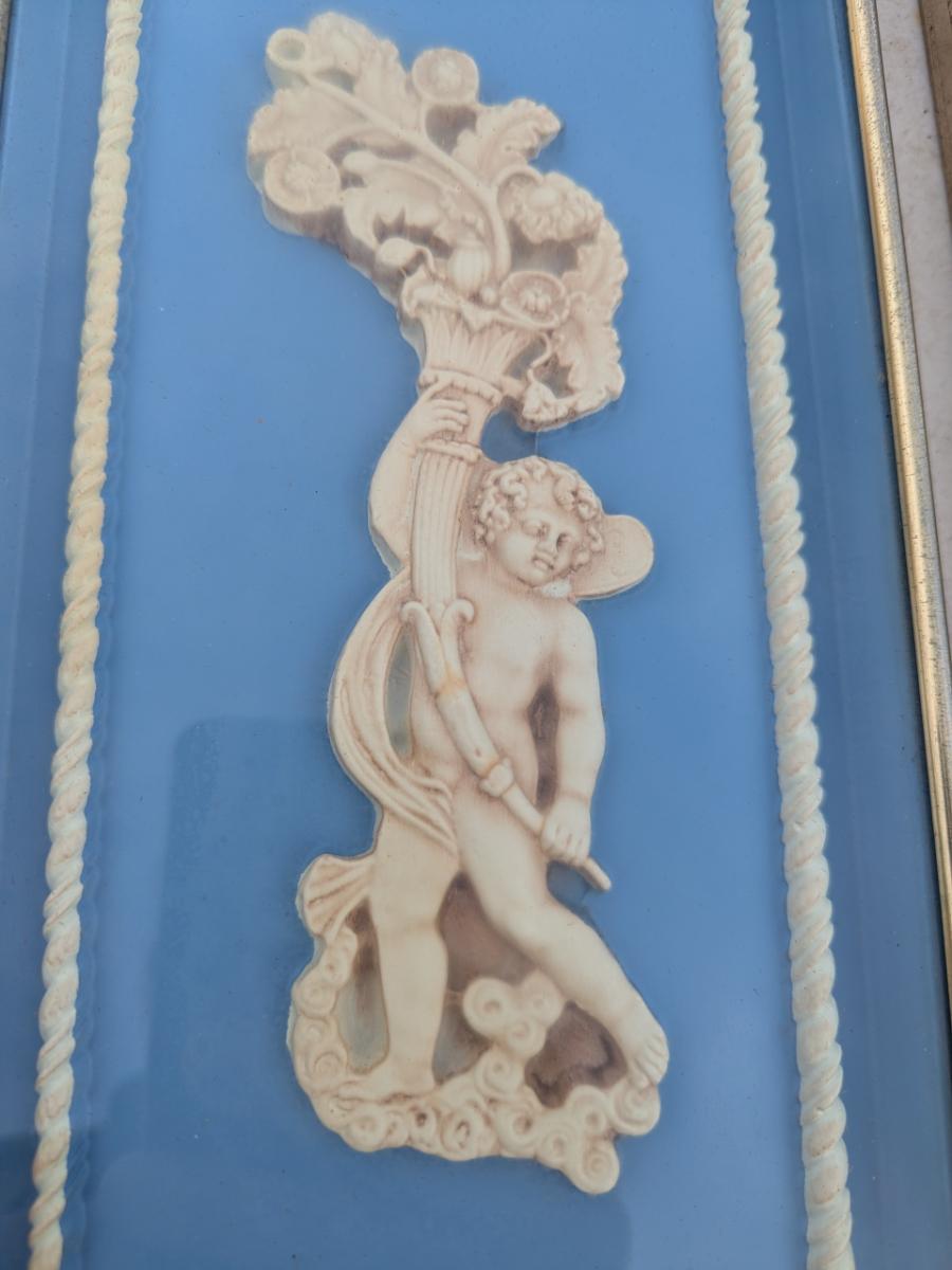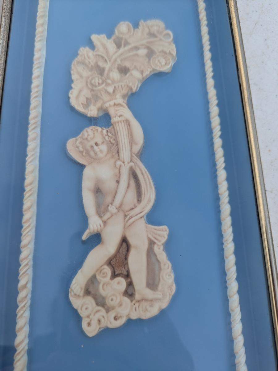 vintage Wedgwood Jasperware cherub wall hangings with gilt frames