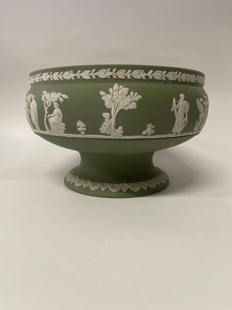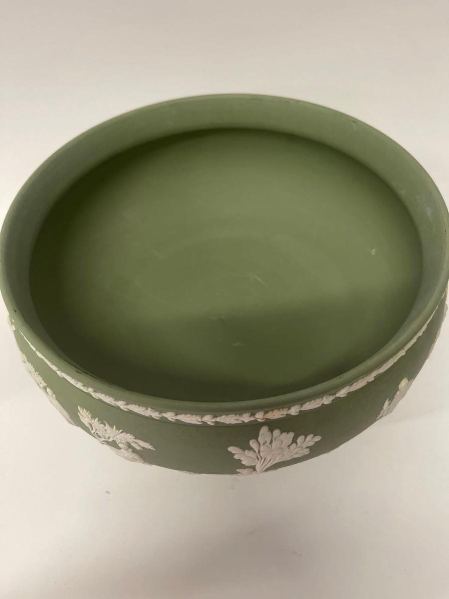<p>Vintage Wedgwood Jasperware Footed Bowl. Very good condition. 5 1/8” high x 8” diameter.</p>