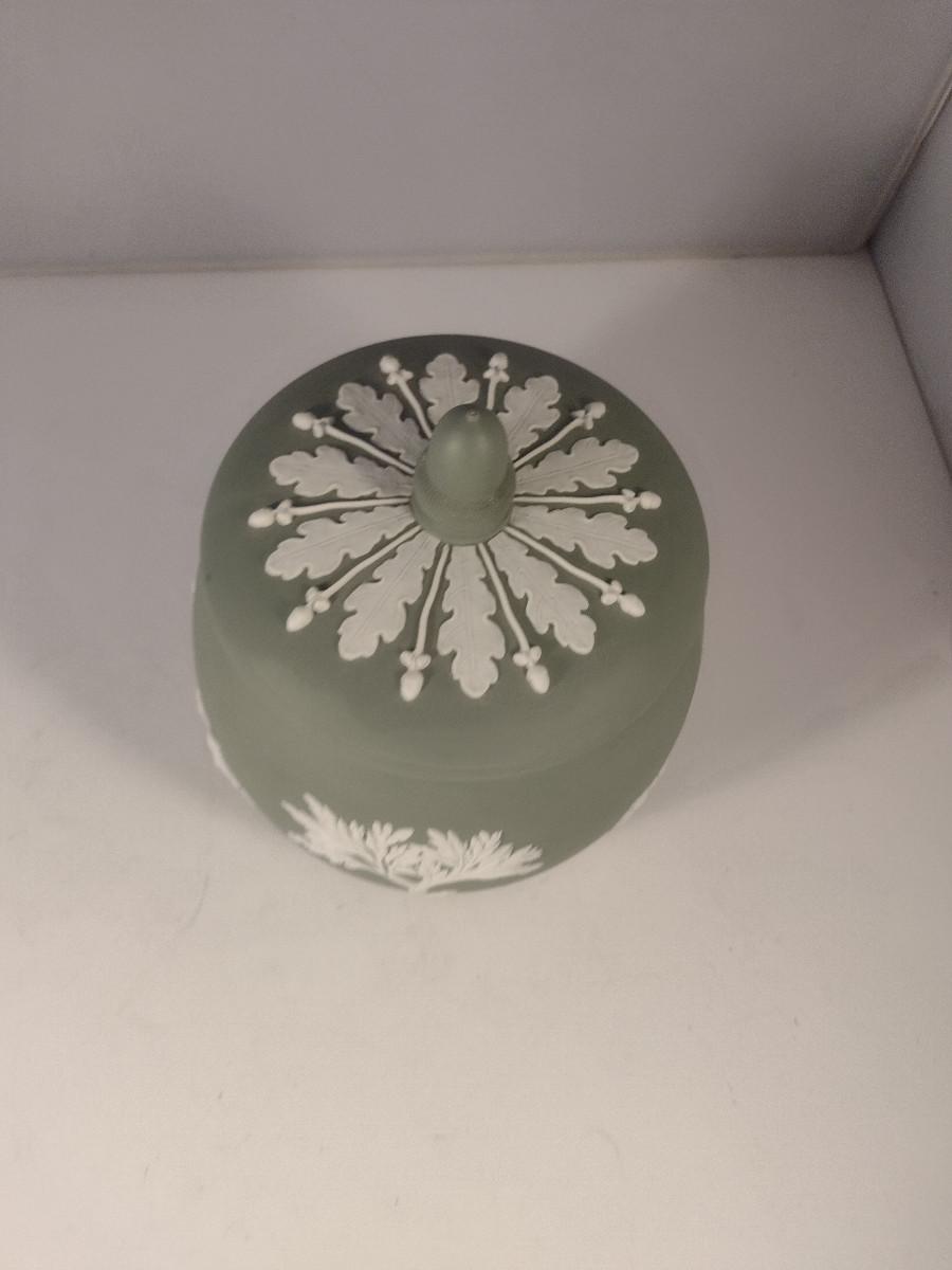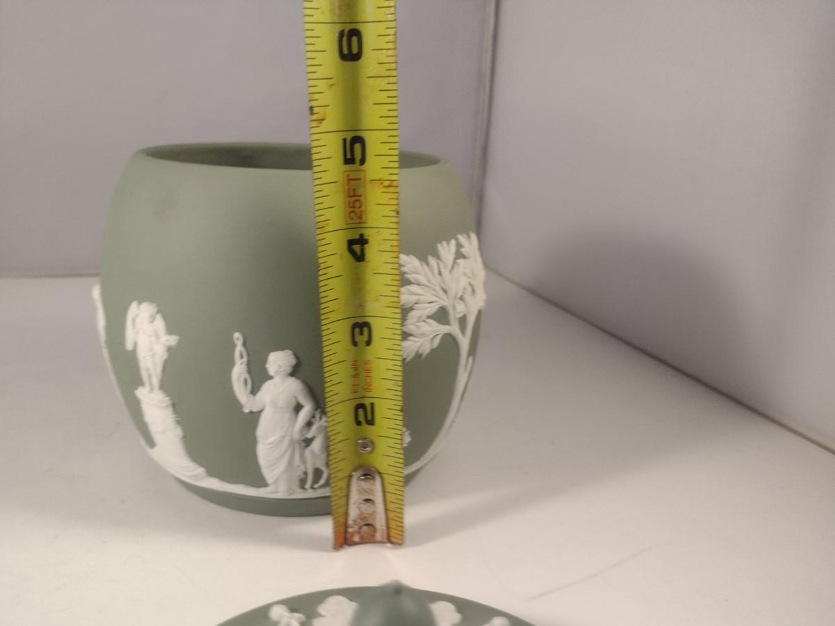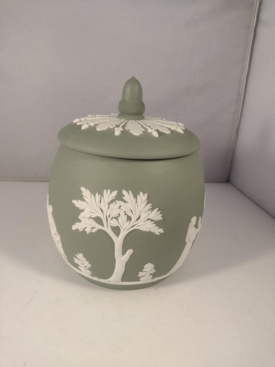 Vintage Wedgwood Jasperware Sage Green Cookie/Biscuit Jar with Lid- Approx 6 1/2" Tall
