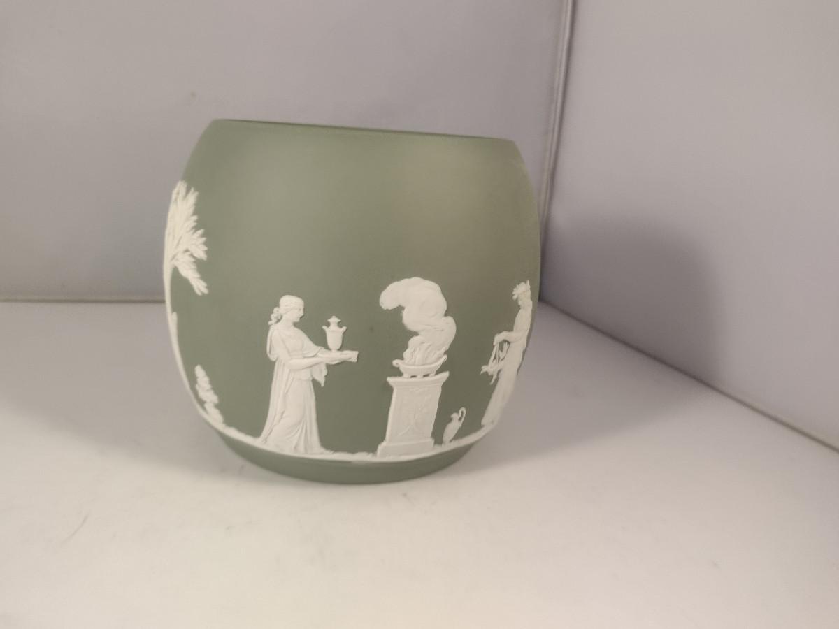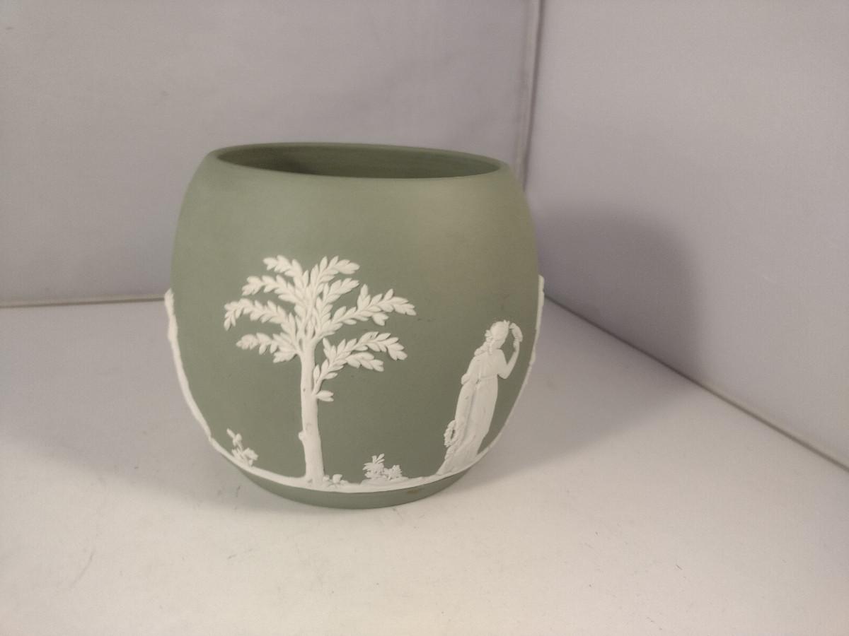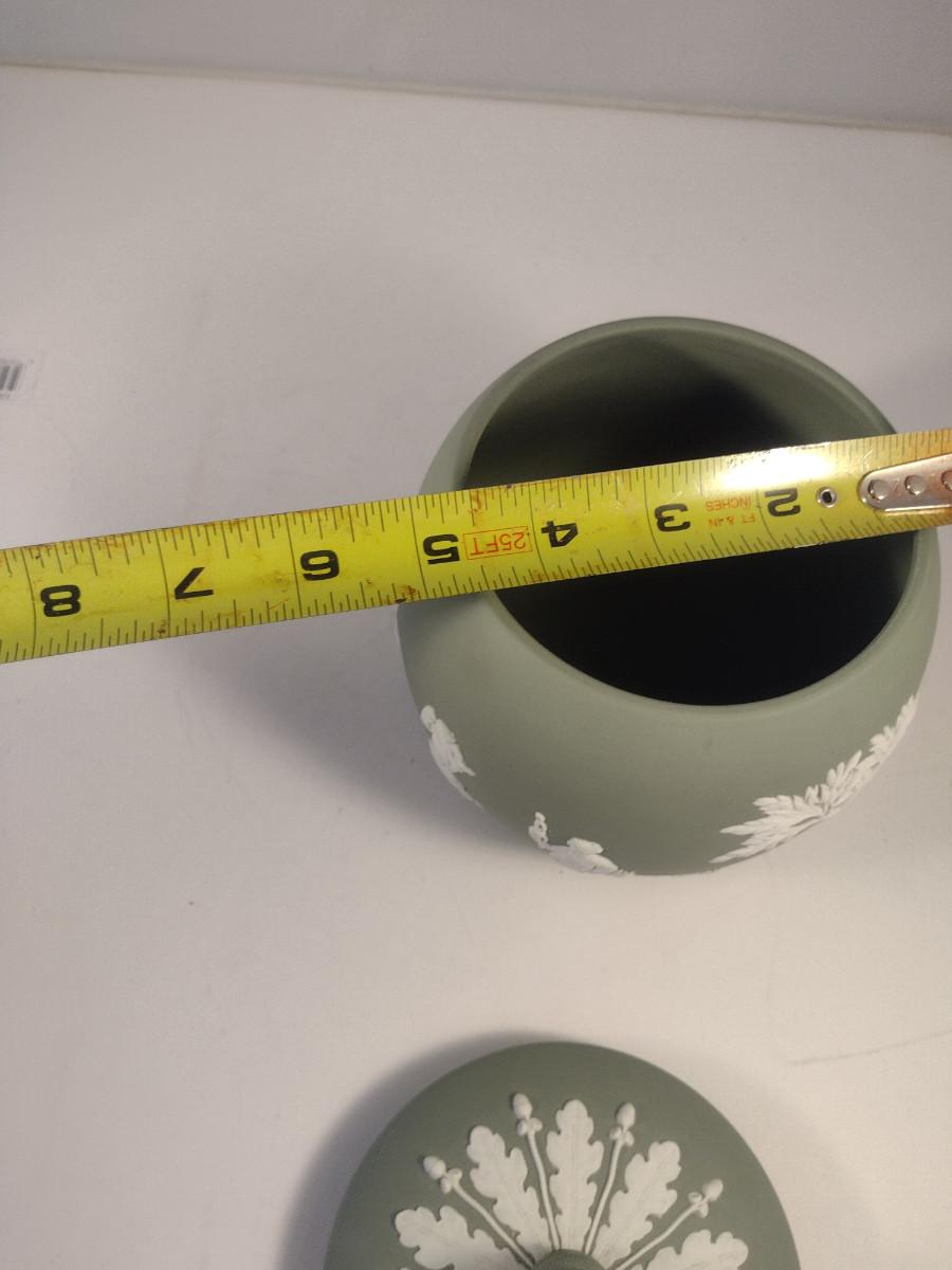 Vintage Wedgwood Jasperware Sage Green Cookie/Biscuit Jar with Lid- Approx 6 1/2" Tall