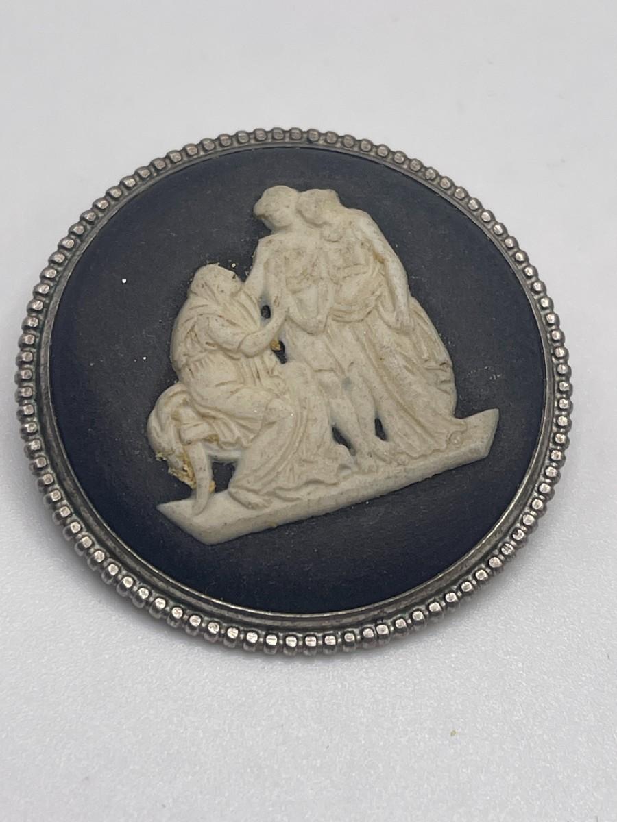 Vintage Wedgwood porcelain brooch. marked on the back. Approx 1 1/4".