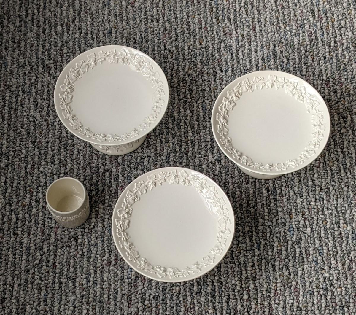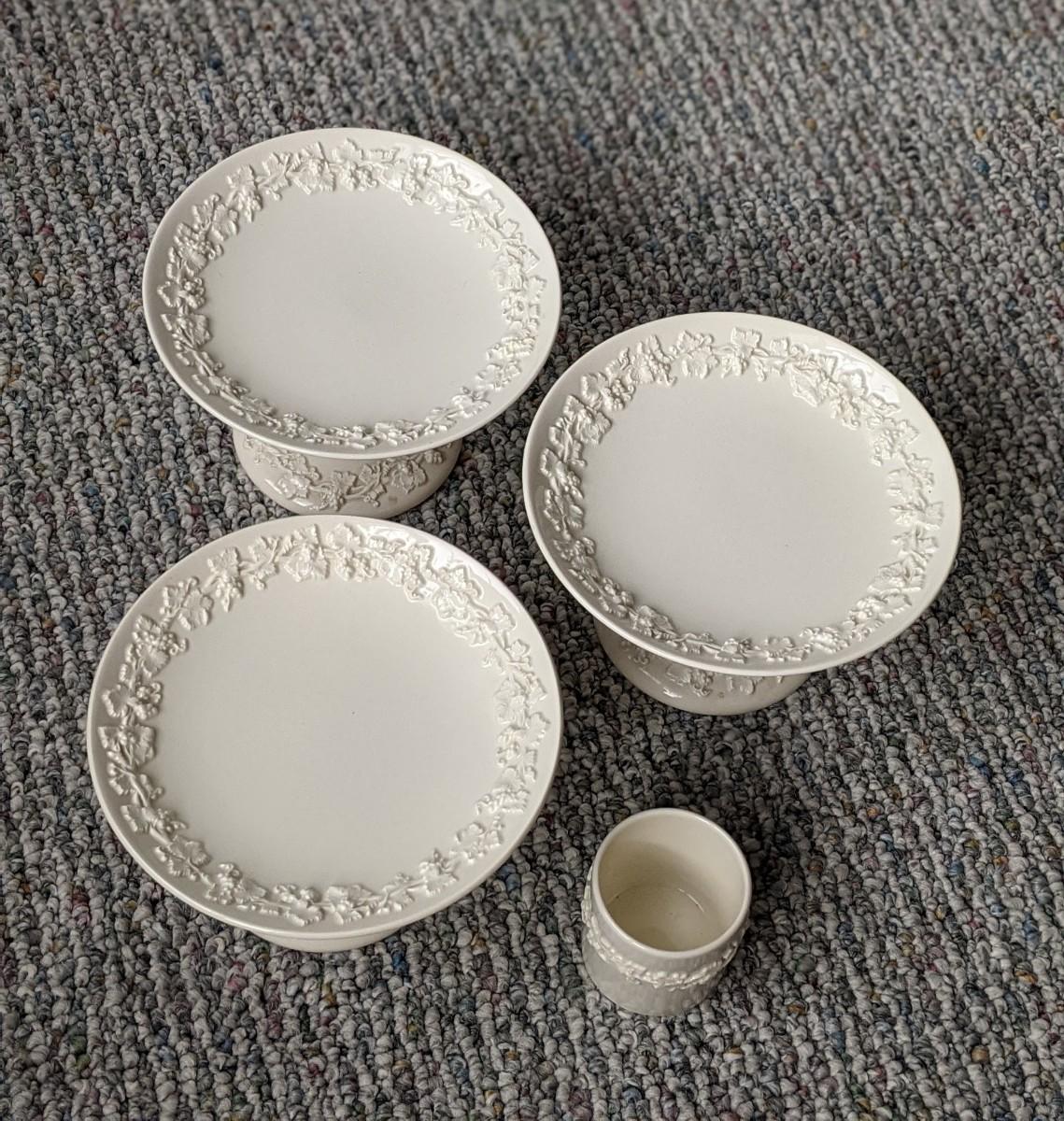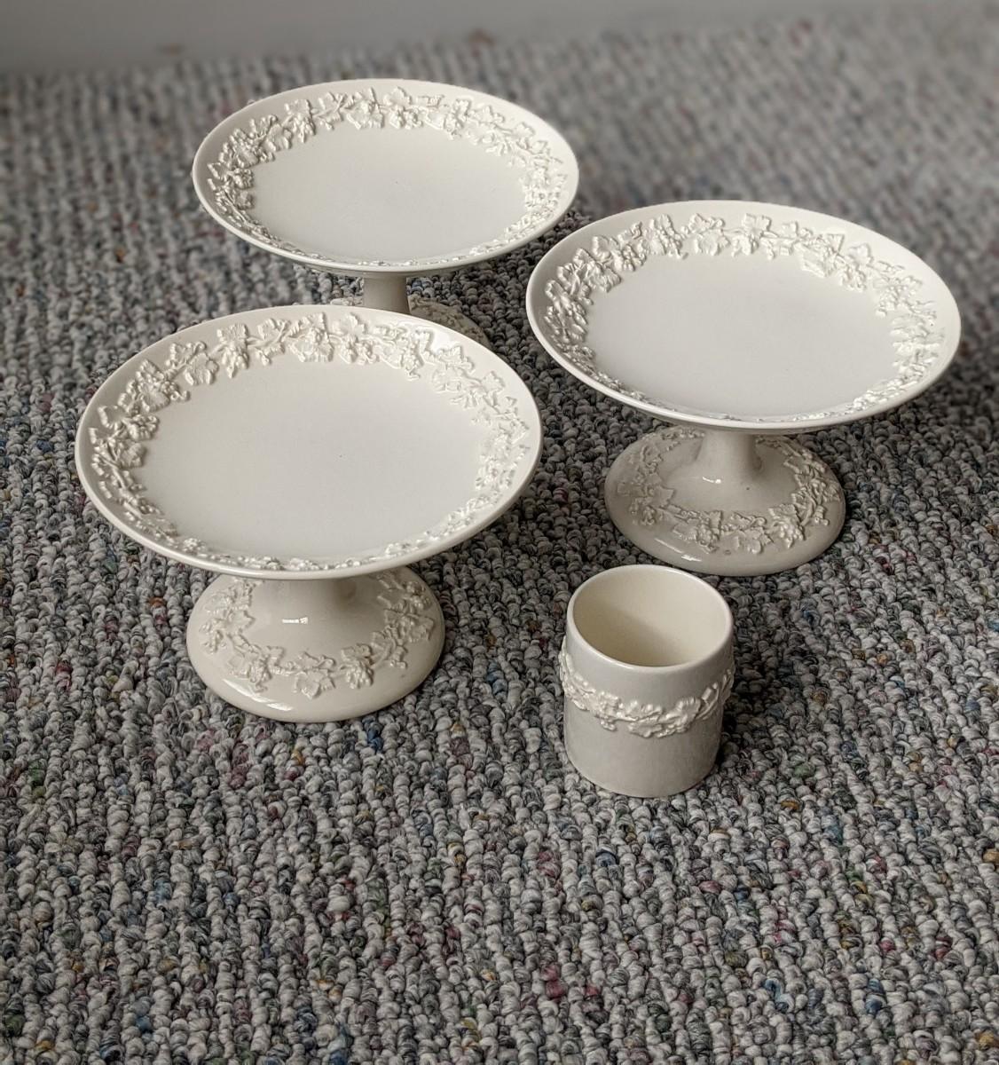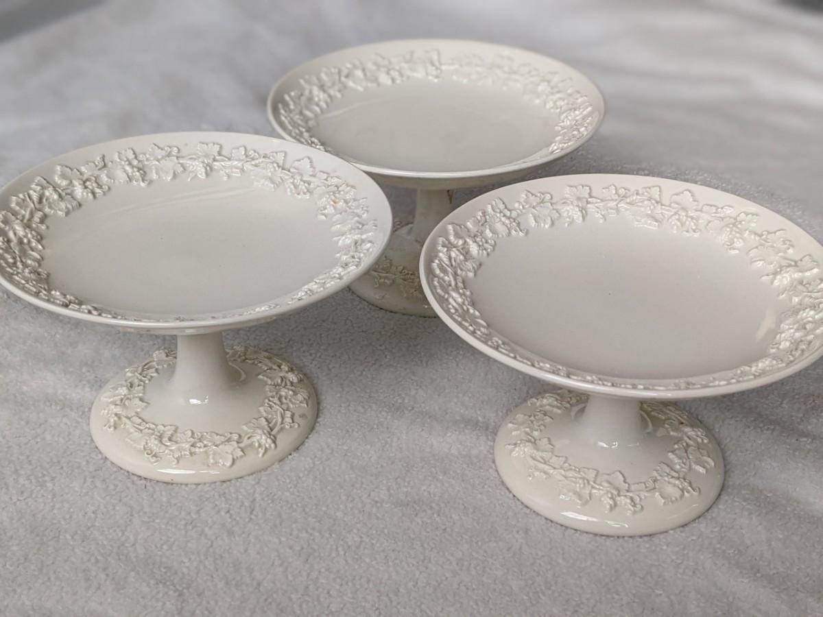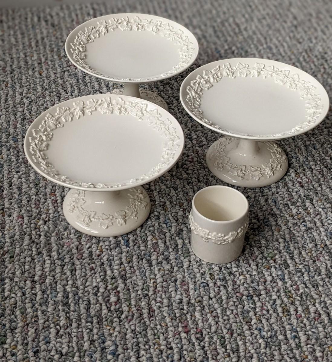 Vintage Wedgwood Queensware Cream on Cream three Pedestal Dishes and one Cup / Holder