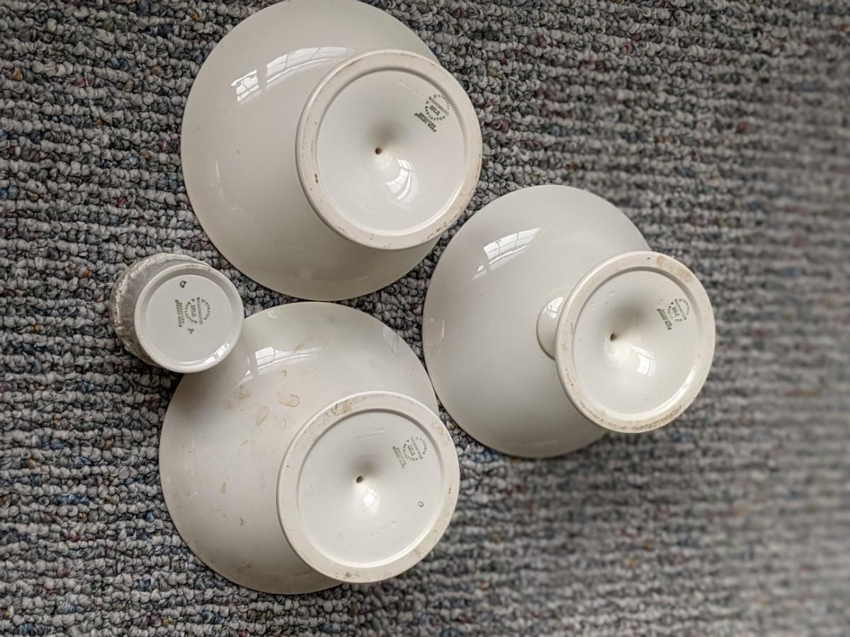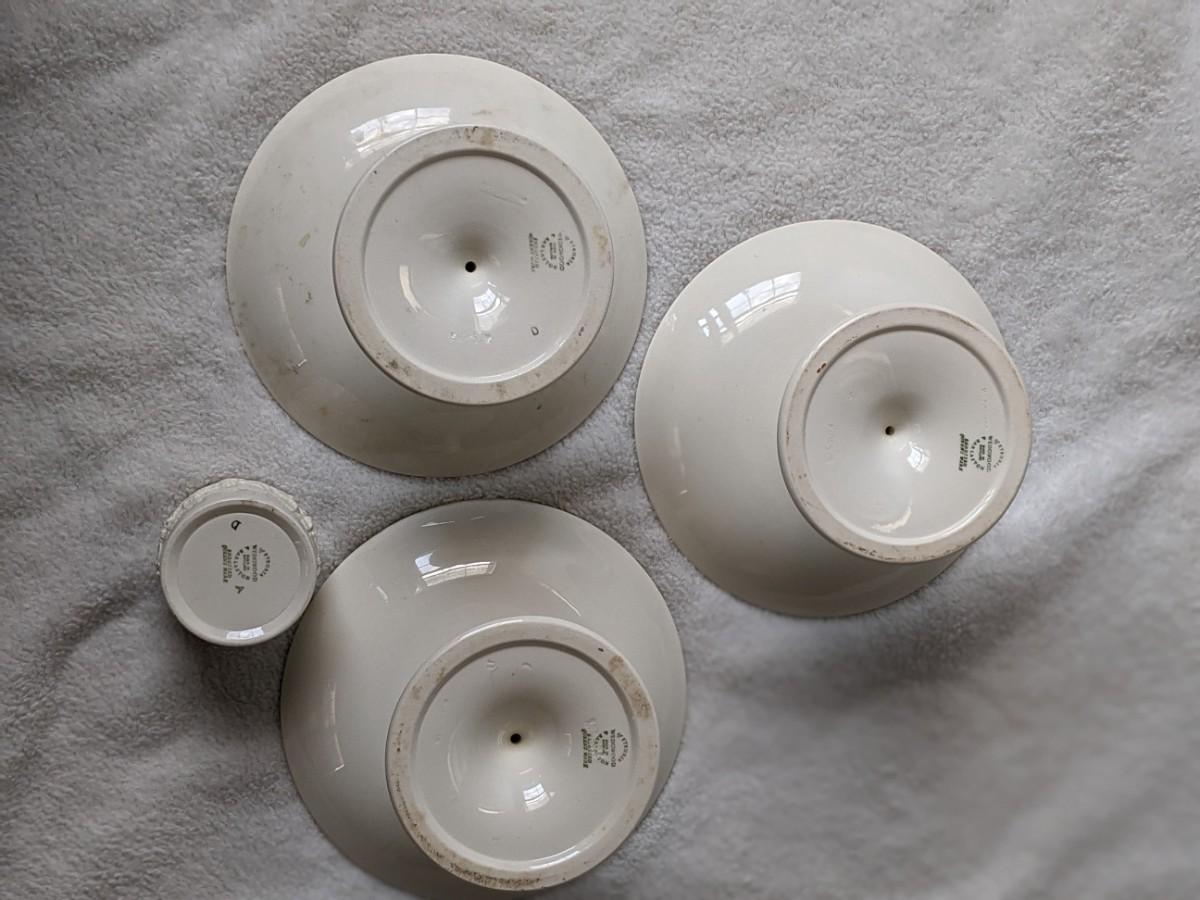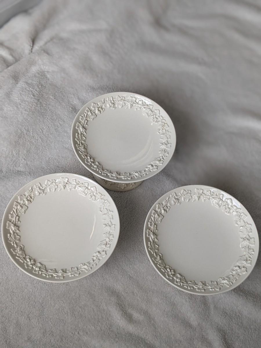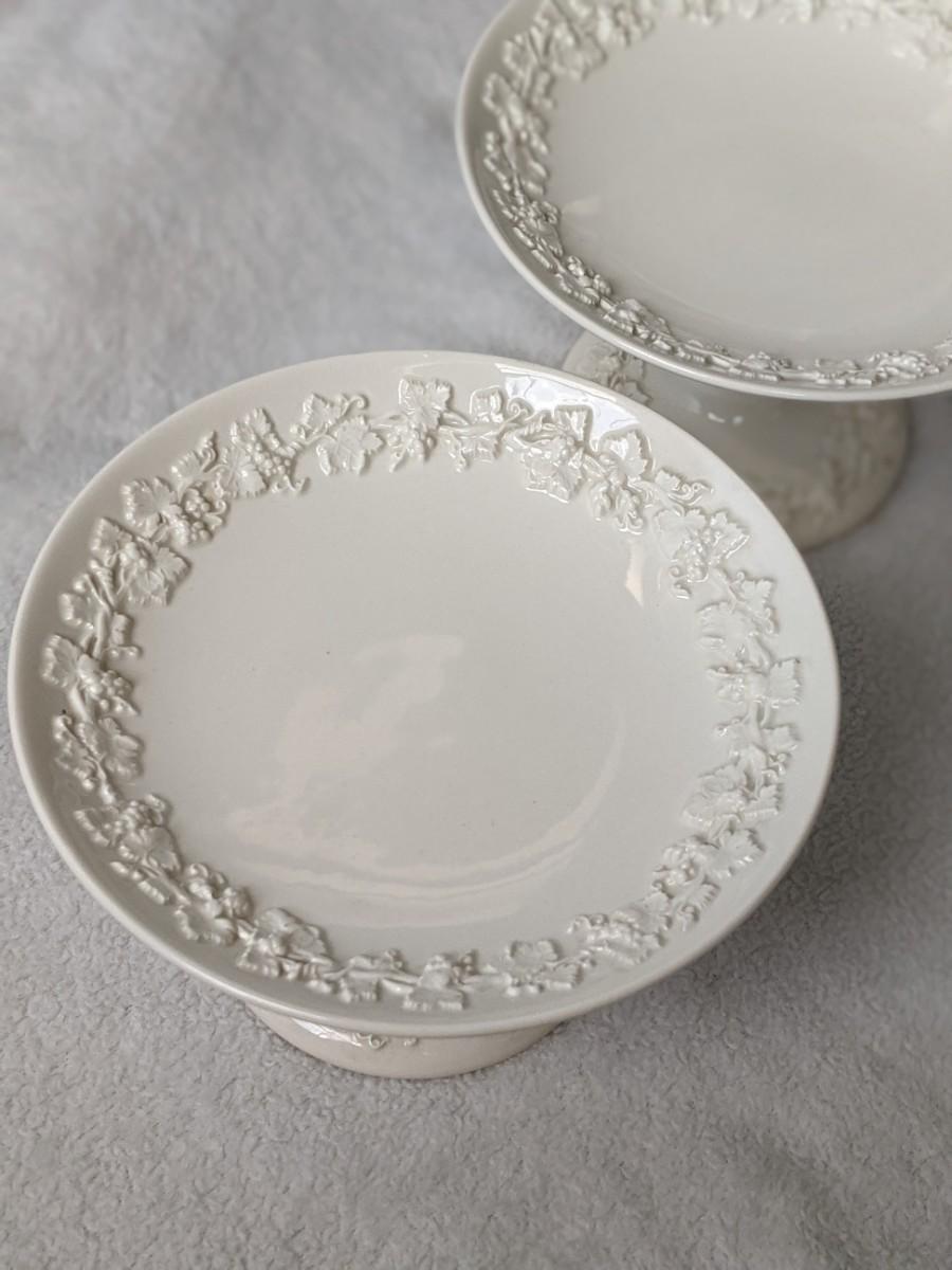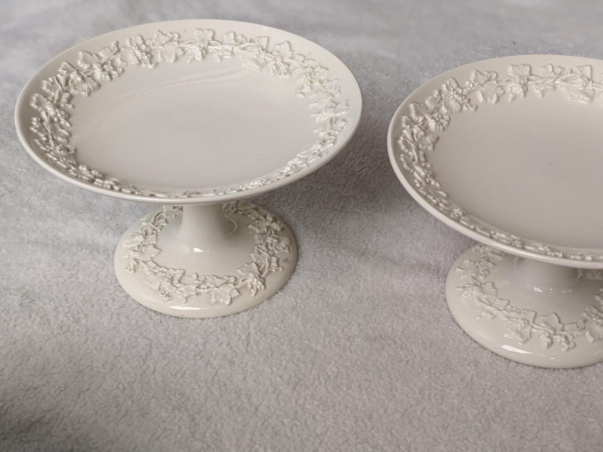 Vintage Wedgwood Queensware Cream on Cream three Pedestal Dishes and one Cup / Holder