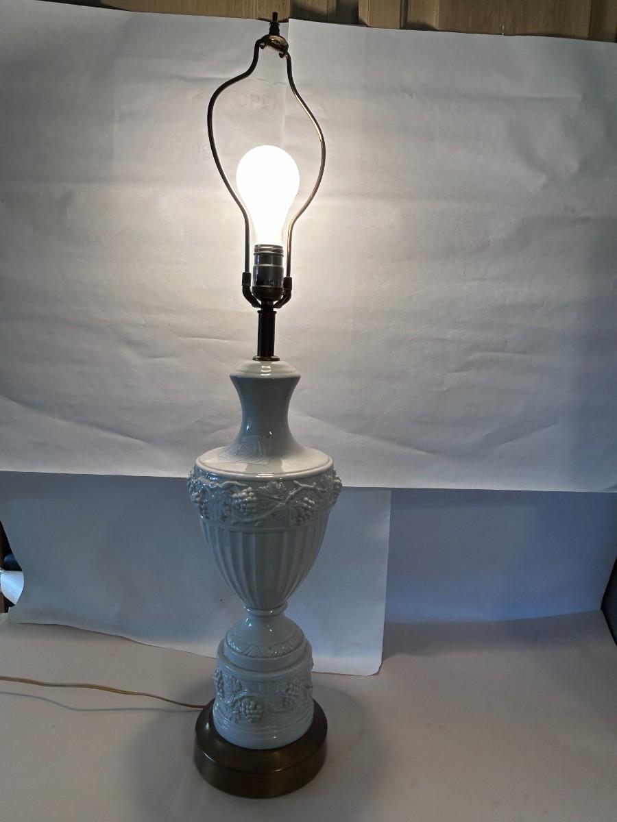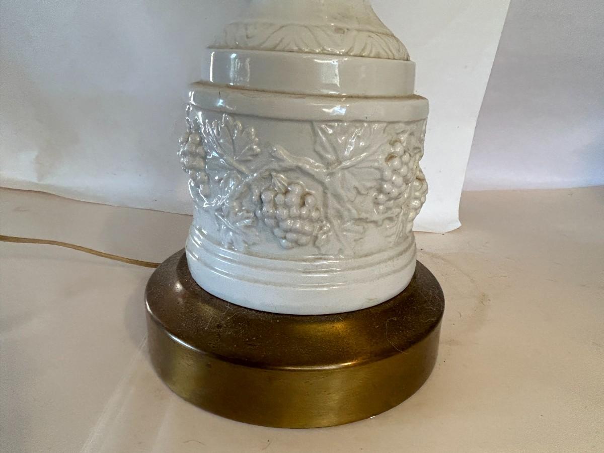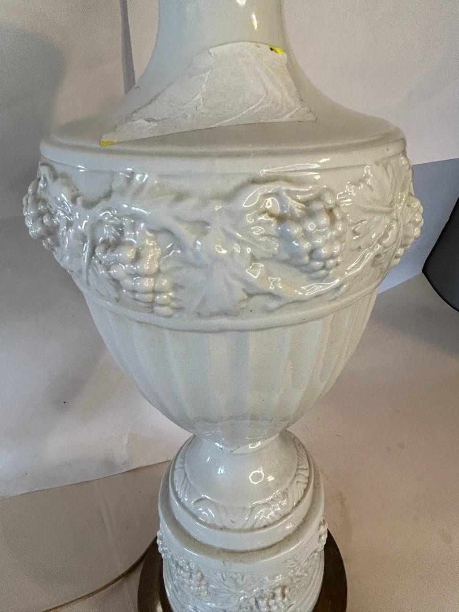 Vintage Wedgwood Style Queensware Style White Porcelain Lamp with Grapevine Motif