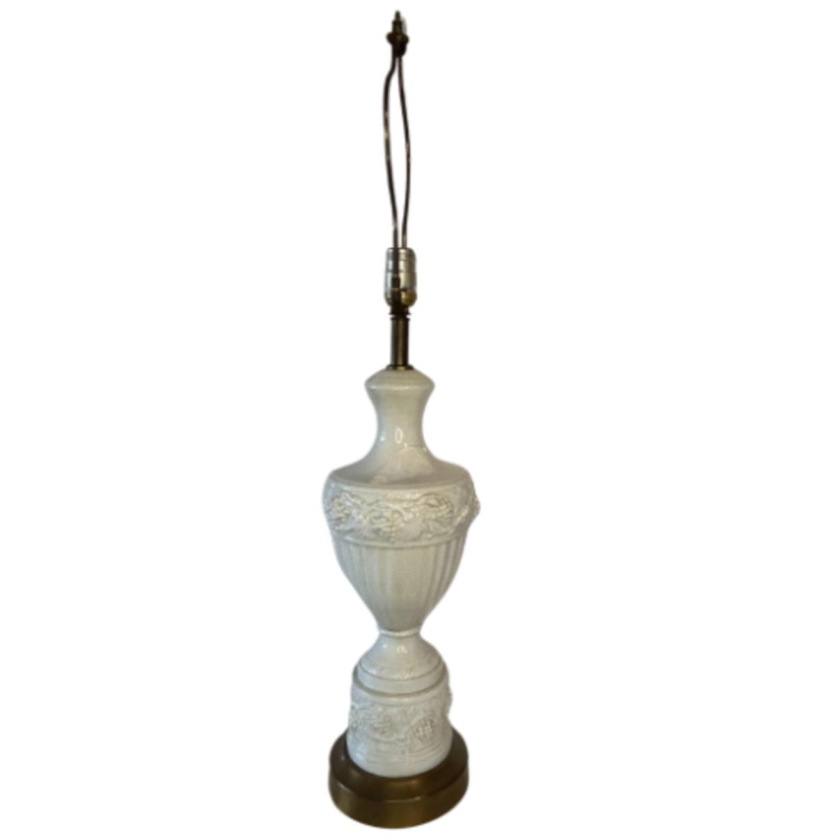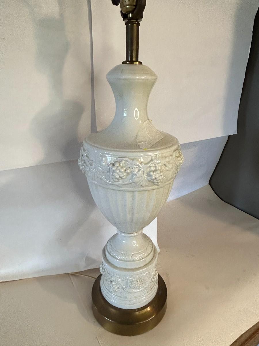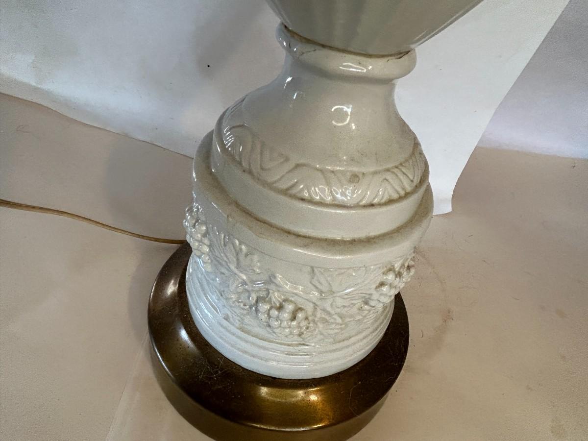Vintage Wedgwood Style Queensware Style White Porcelain Lamp with Grapevine Motif