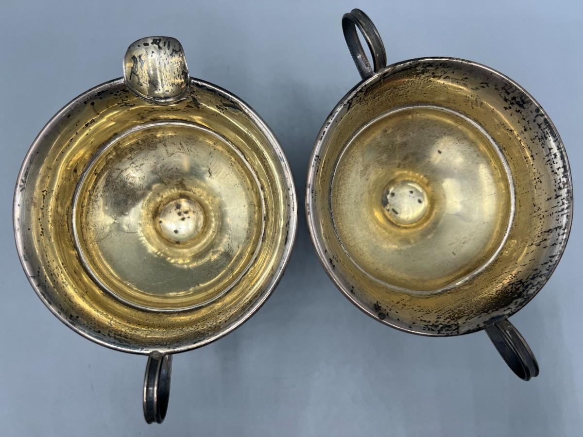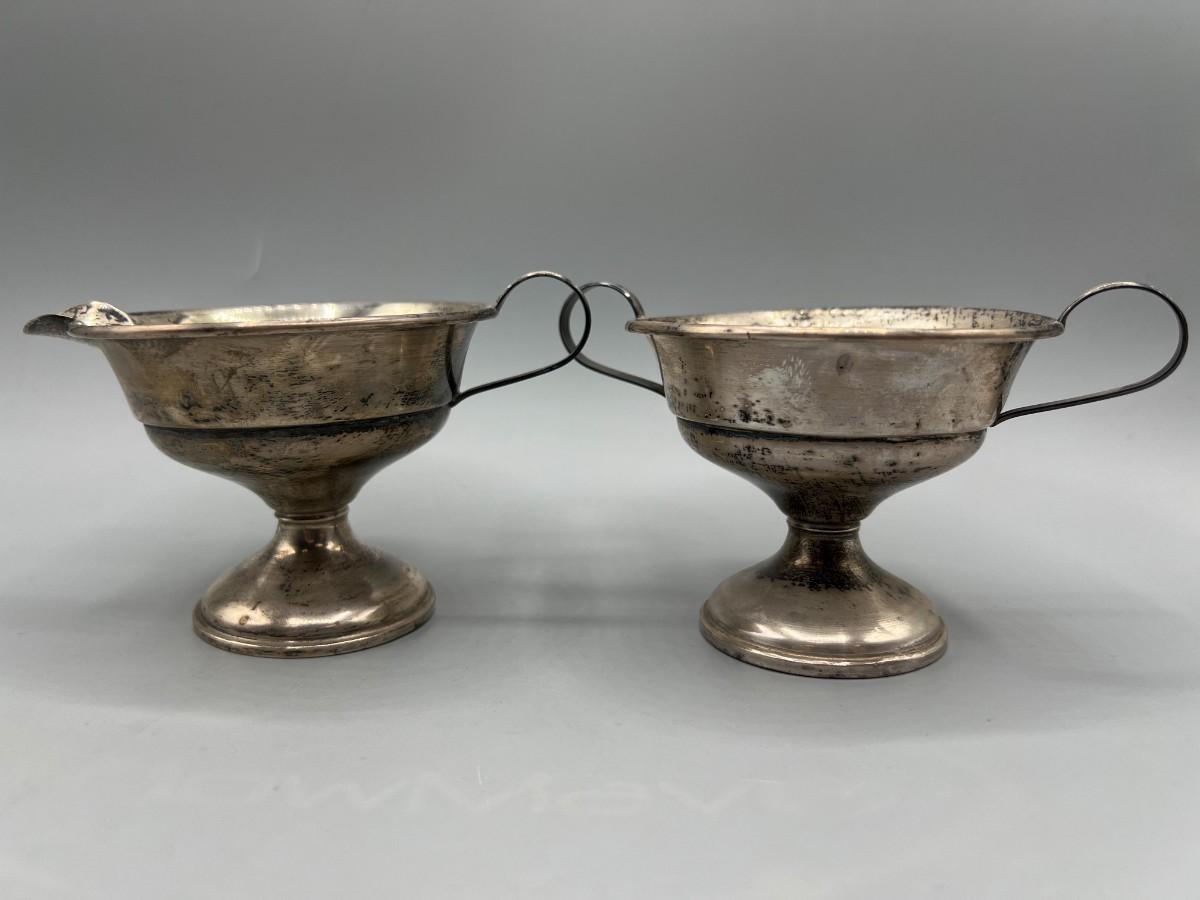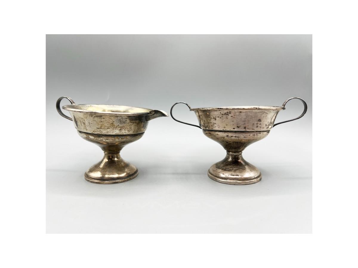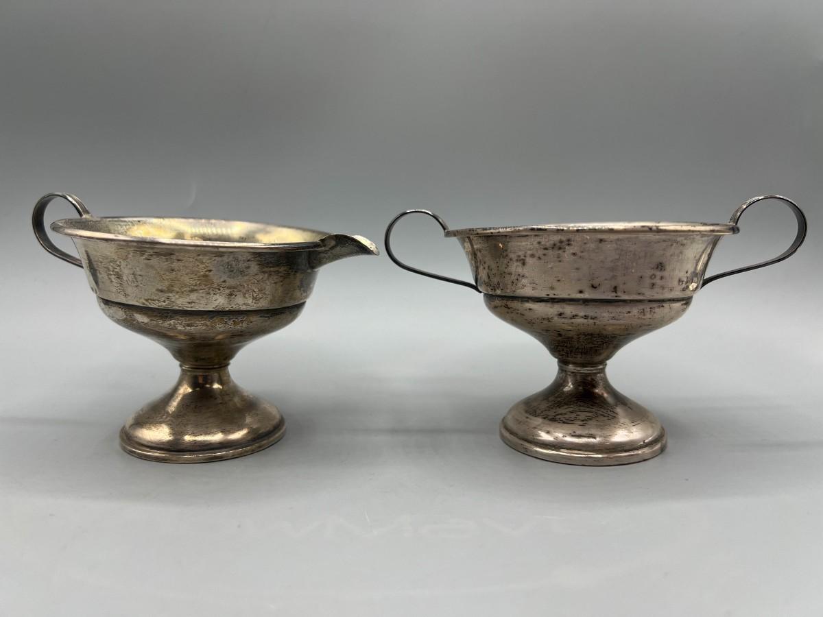 Vintage sterling silver weighted cream and sugar bowl set. In fair used condition, have signs of wear and age.