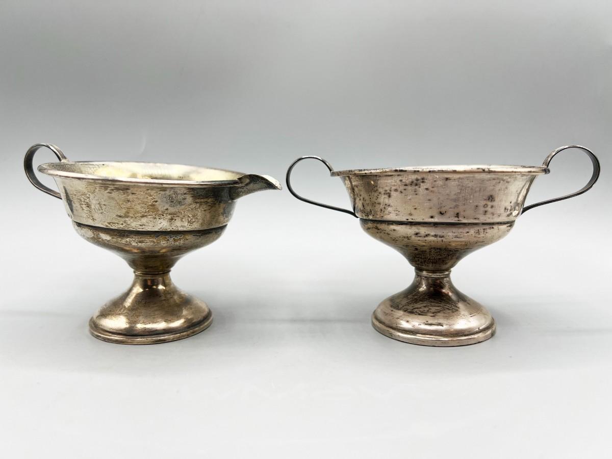 Vintage Weighted Sterling Silver Creamer Pitcher and Sugar Bowl