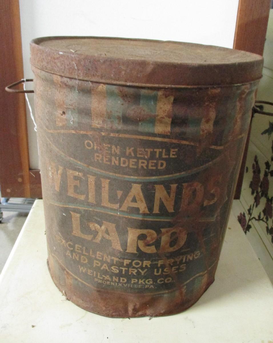 Vintage Weiland’s Lard Phoenixville PA 50 Lb. Can Tin Metal Advertising