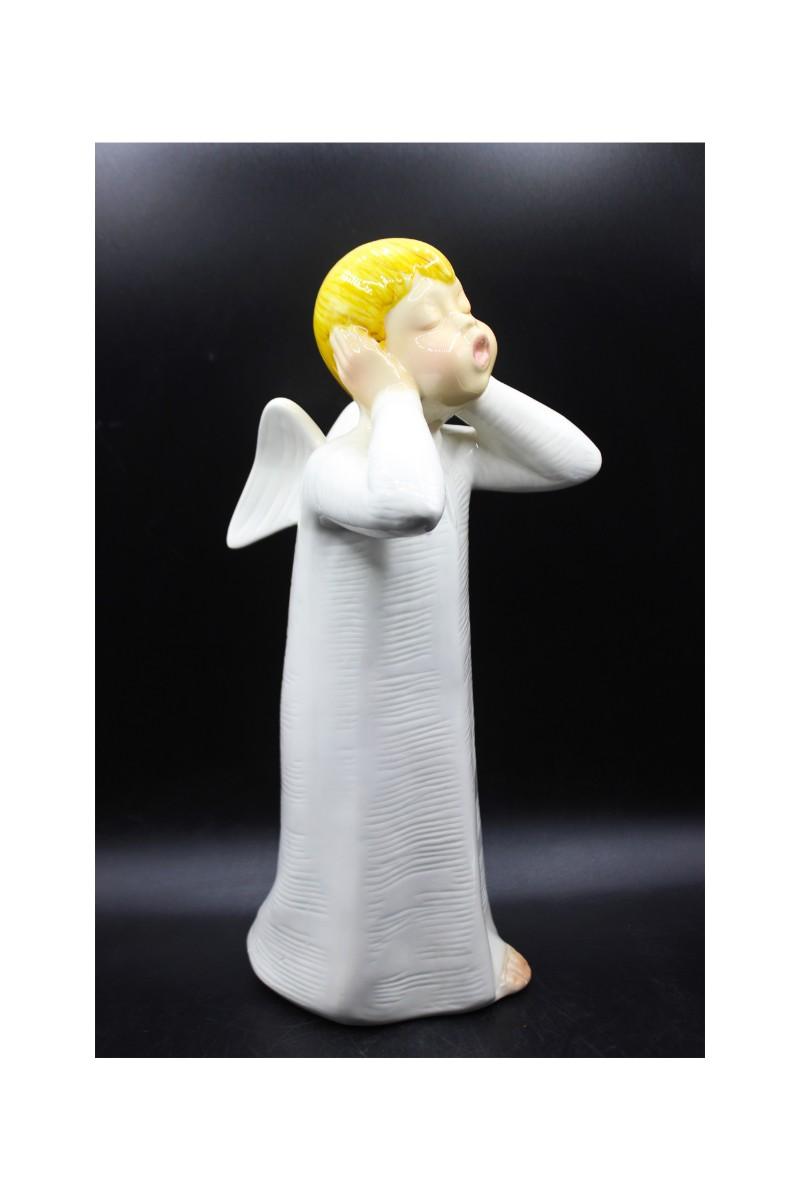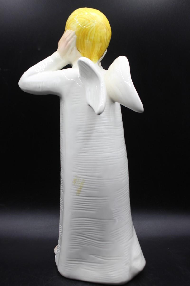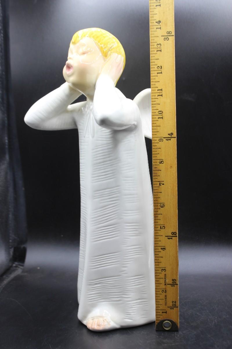 Vintage Weiss ceramic angel figurine. Hand painted made in Brazil. Angel is covering his ears singing. Great indoor or in the garden. About 14".