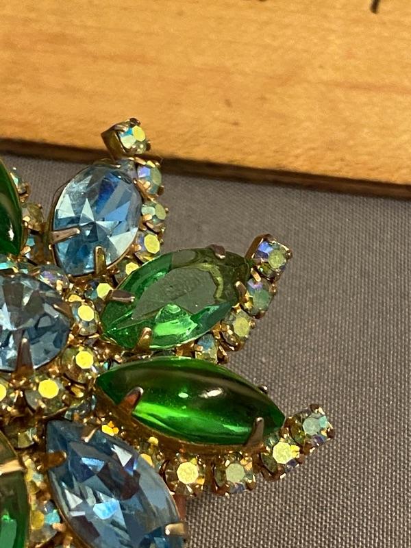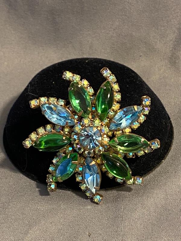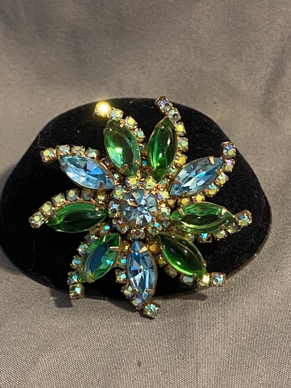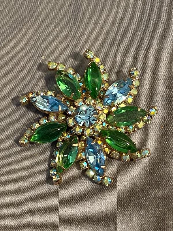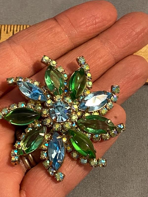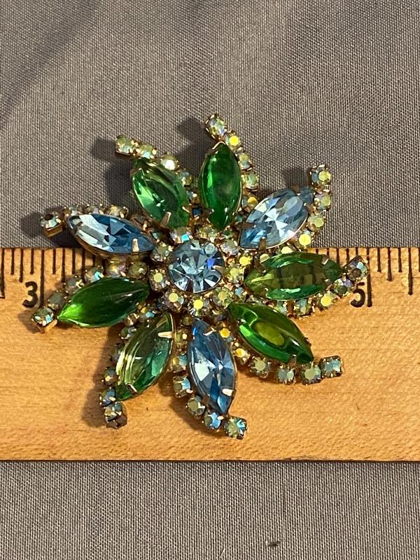 Vintage Weiss Starburst Flower Blue Green Brooch YD#013-1120-00057