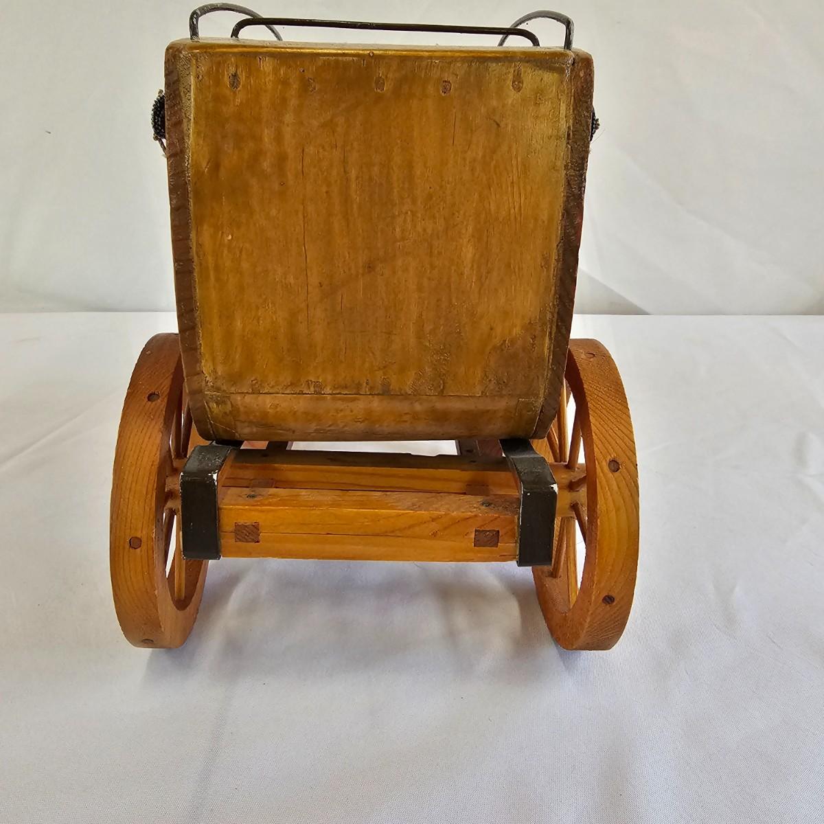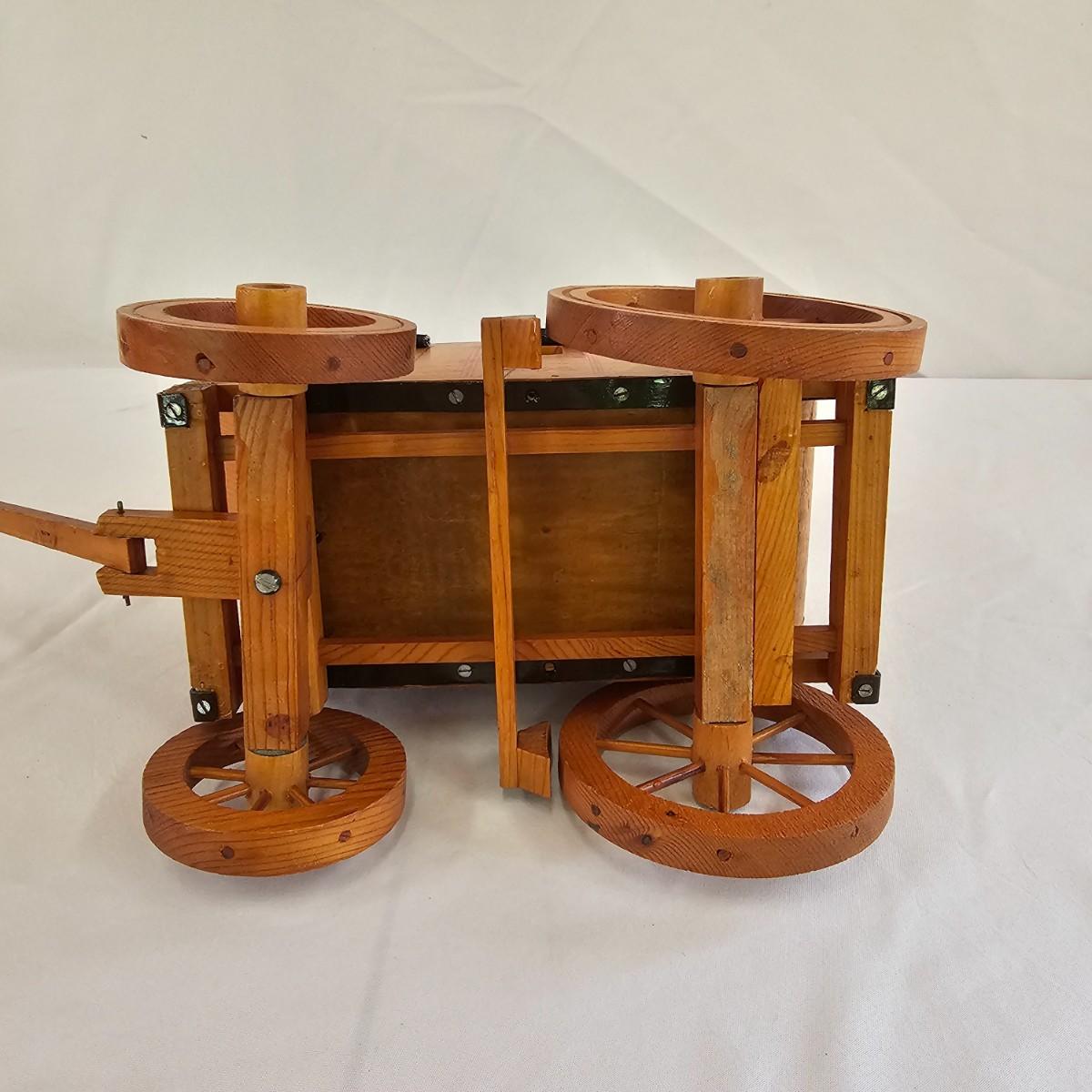 An icon of the Old West, this replica stagecoach is a wooden model of the type that carried mail and passengers Westward. All wood with metal accent accessories, this unit measures 18" x 7" x 9"H. Front axle and all wheels turn. See photos for details. Shipping available.