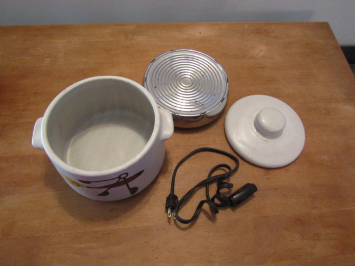 Vintage West Bend Electric Bean/Soup Pot Set- Lid has Crack