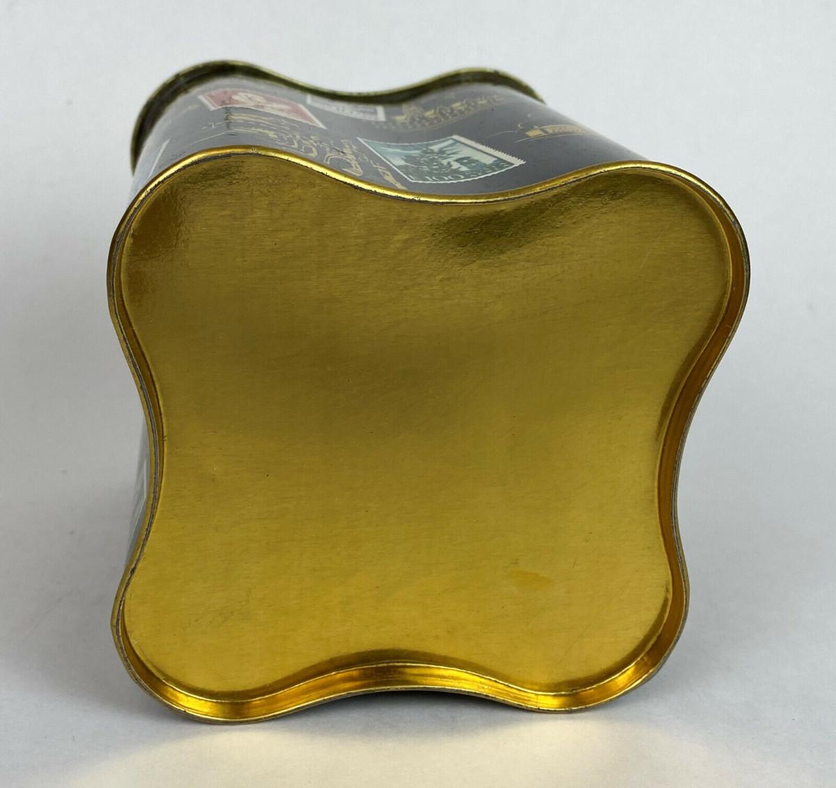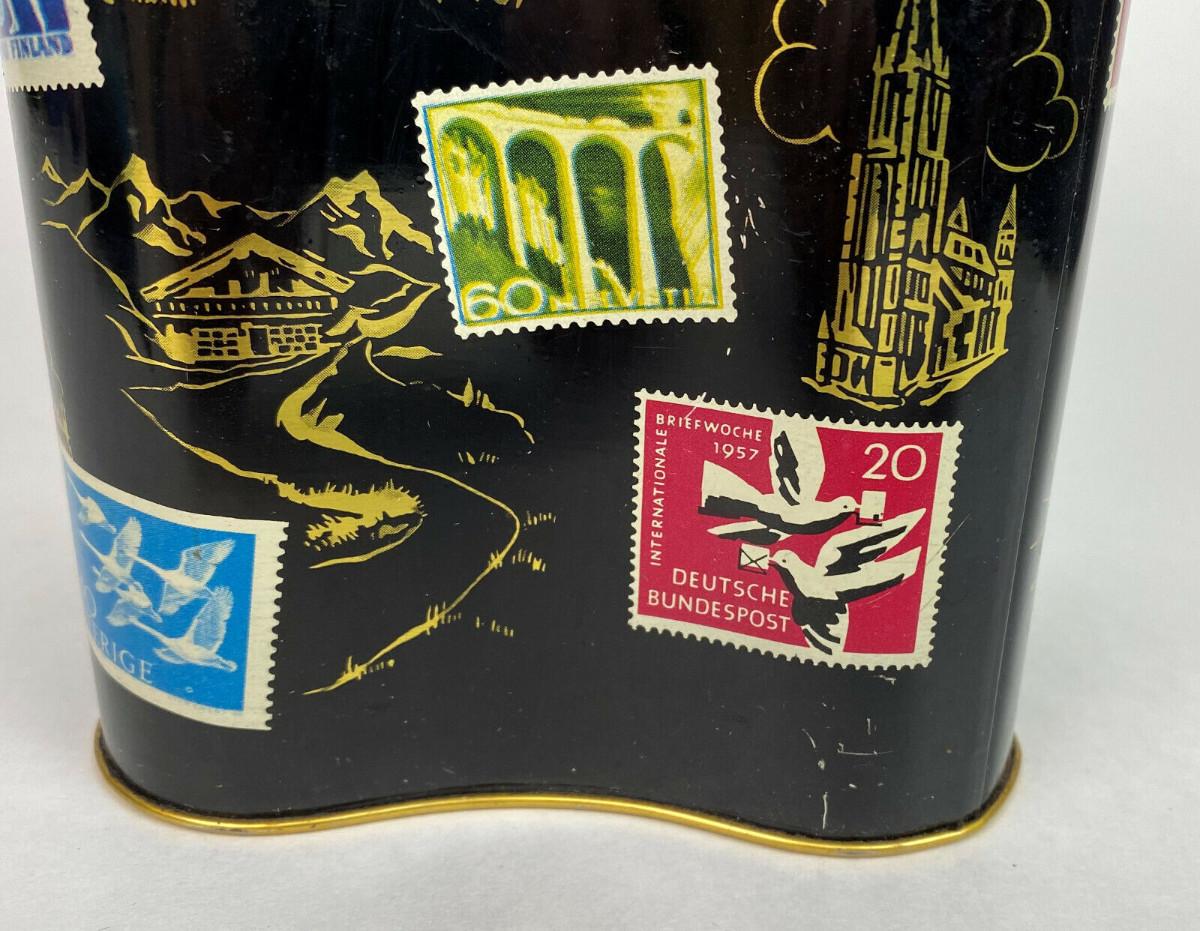 vintage WEST GERMAN BISCUIT CANDY ADVERTISING TIN 1950s postage stamp graphics