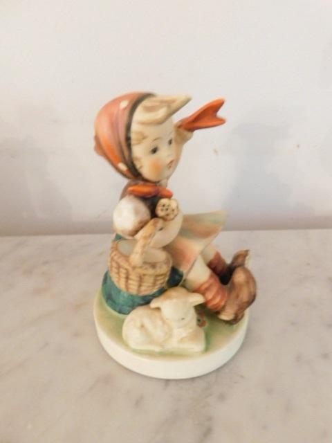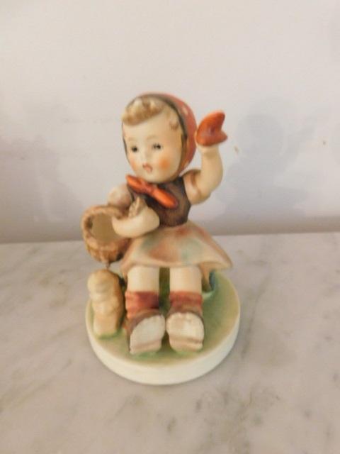 Vintage West German Goebel Hummel Wind Blown Girl with Basket