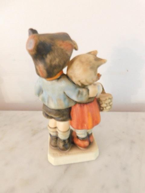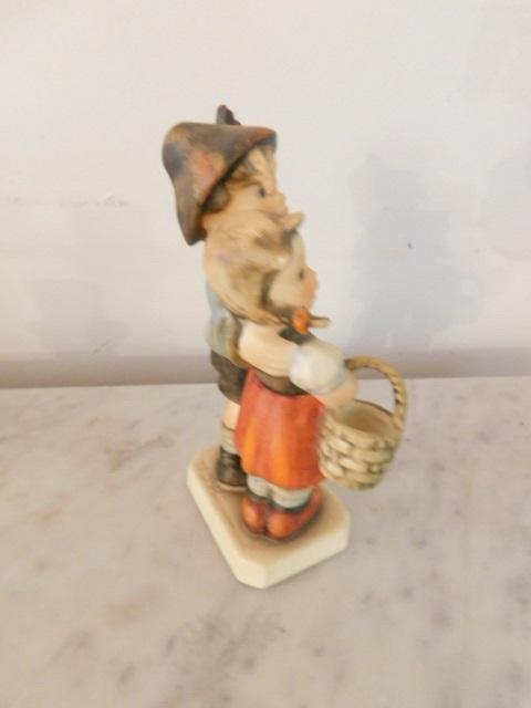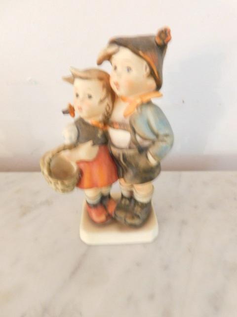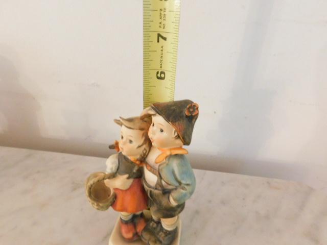 Vintage West German Goebel Hummel Wind Blown Girl with Basket and Boy with Cap