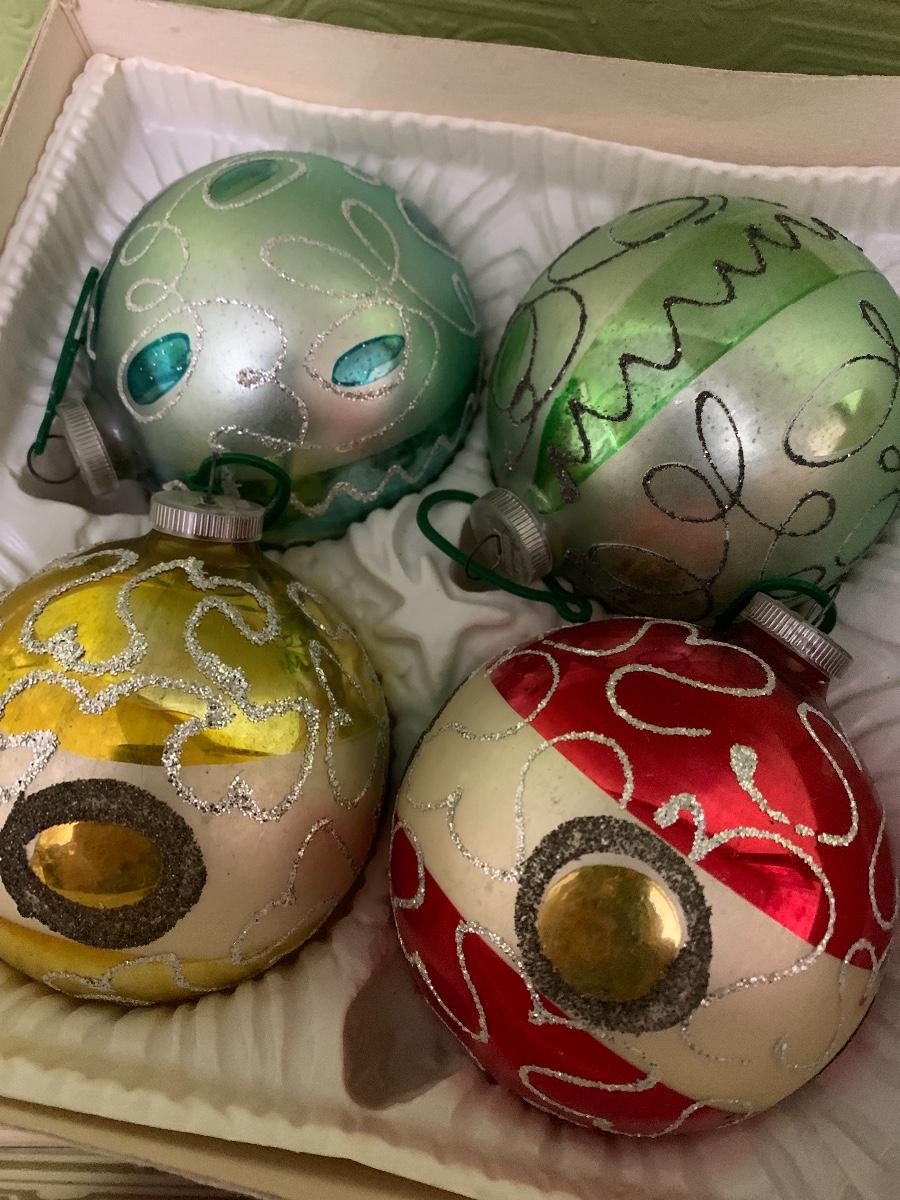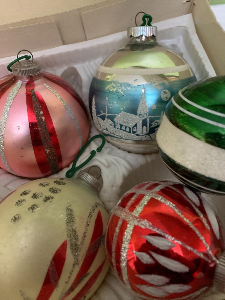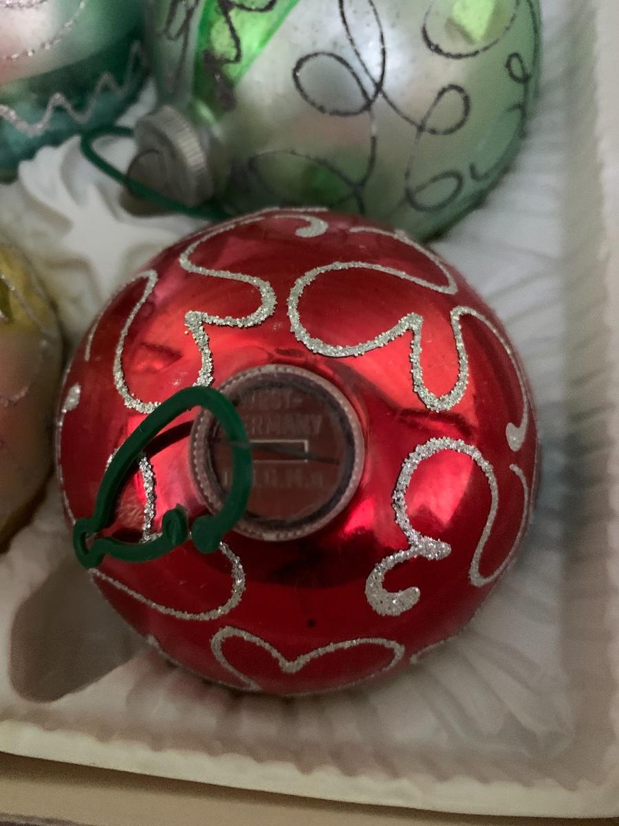 Vintage West Germany Christmas ornaments seven large to small..leg approximately 3” small approximately 2 1/4” good condition