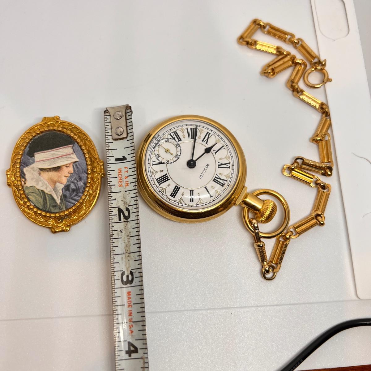 Vintage Westclox Engraved Train Pocket Watch & “Original By Robert” Brooch