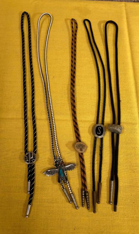 Here are five(5) western wear Bolo ties..very good condition...nice variety...