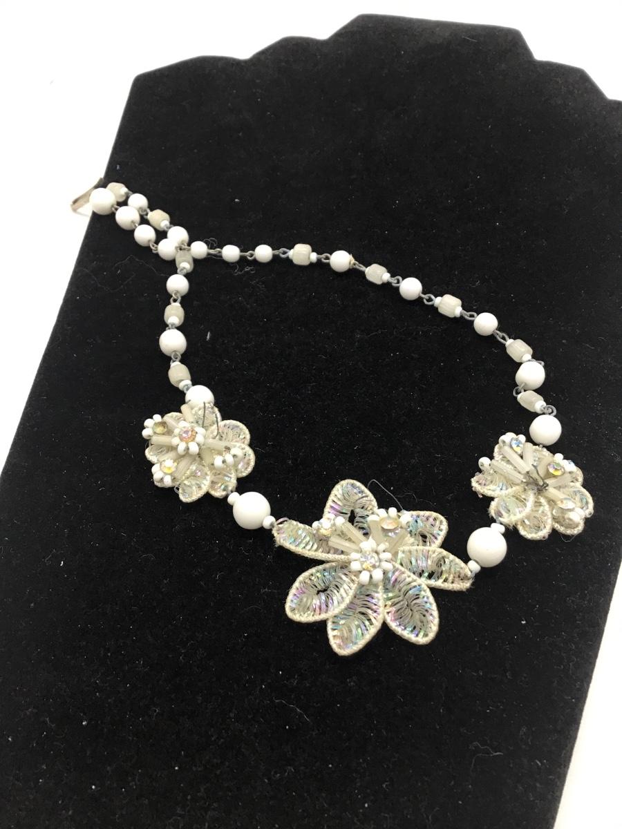 Vintage western Germany white beaded flower necklace