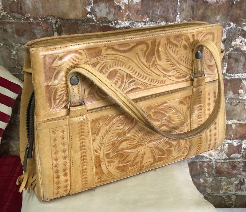 Here is a vintage hand tooled leather purse...a western motif on this hand bag...good condition...