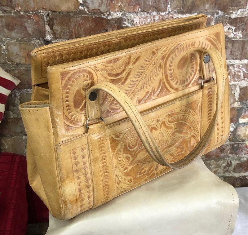 vintage WESTERN HAND TOOLED LEATHER PURSE