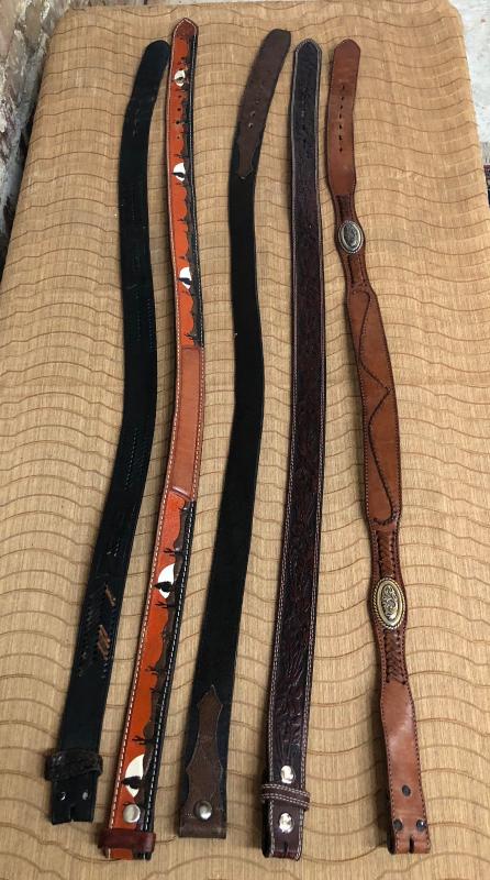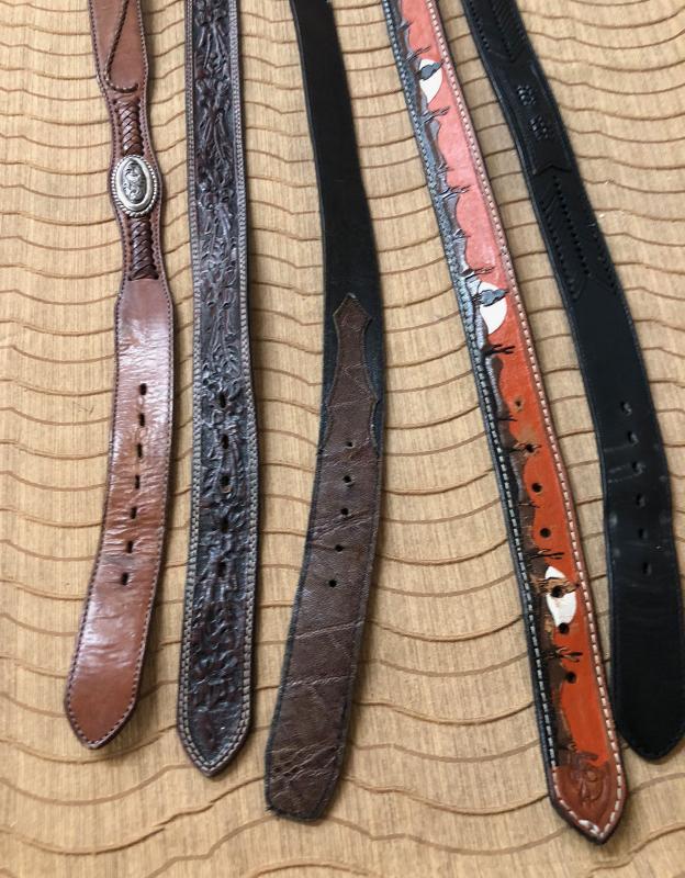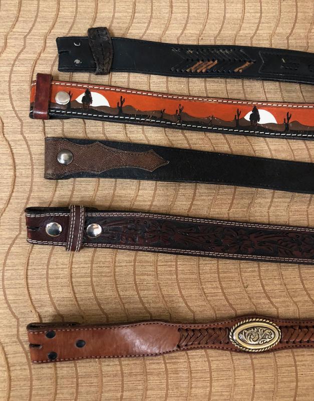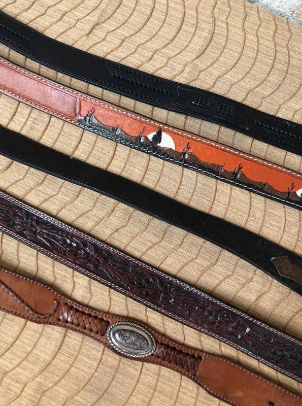 Here is a lot of five(5) vintage leather men's belts...Size 34...Western style...Good used condition...