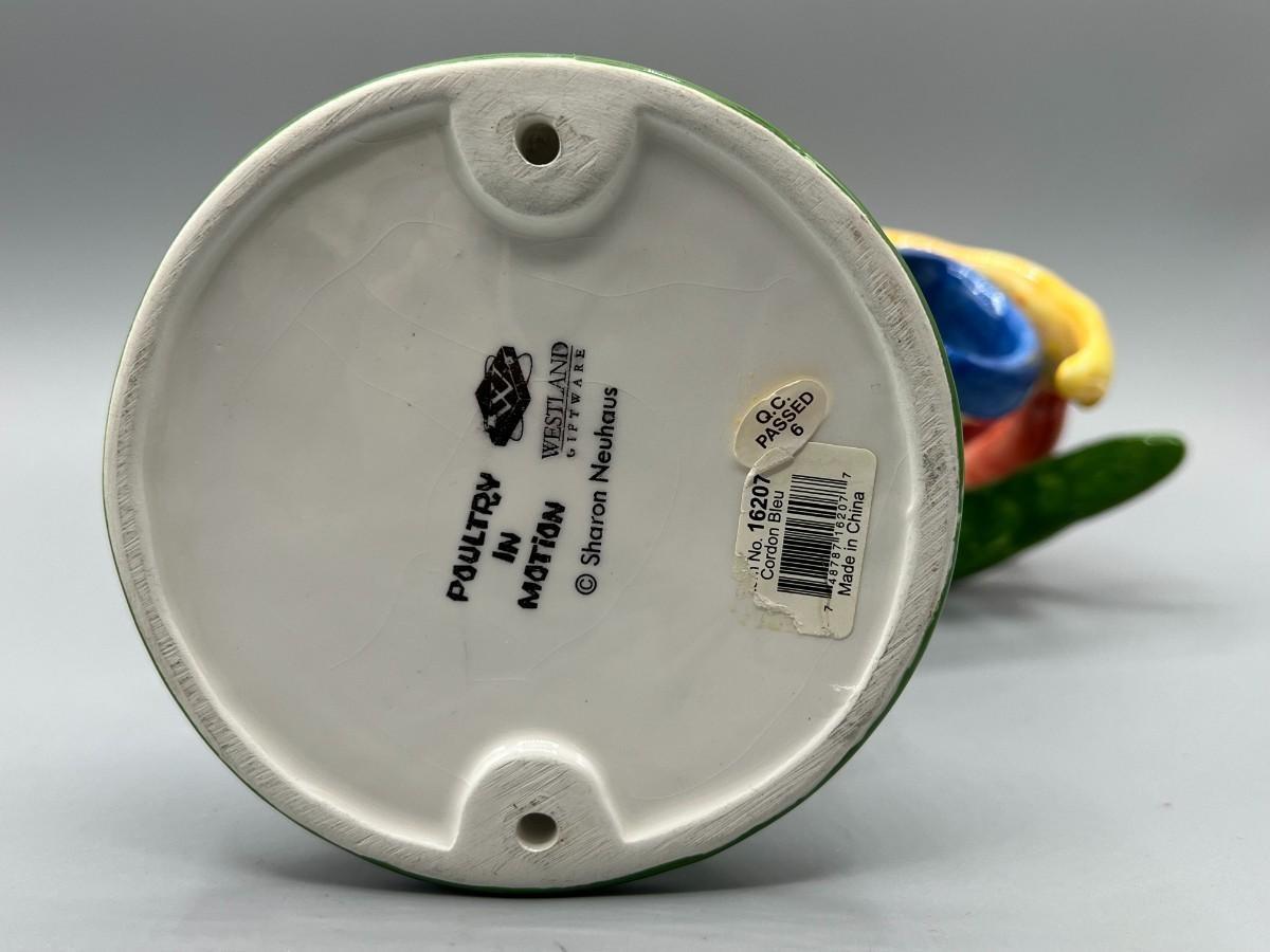 Vintage Westland Giftware Poultry in Motion Cordon Bleu Pattern 16207 Sharon Neuhaus Ceramic Art Rooster Figurine by Sharon Neuhaus, there are no significant cracks or chips to the piece and is in good vintage condition. Check pictures for more details and for sizing.