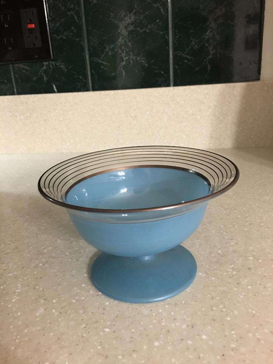 Vintage Westmoreland blue footed gold trim bowl with ladle