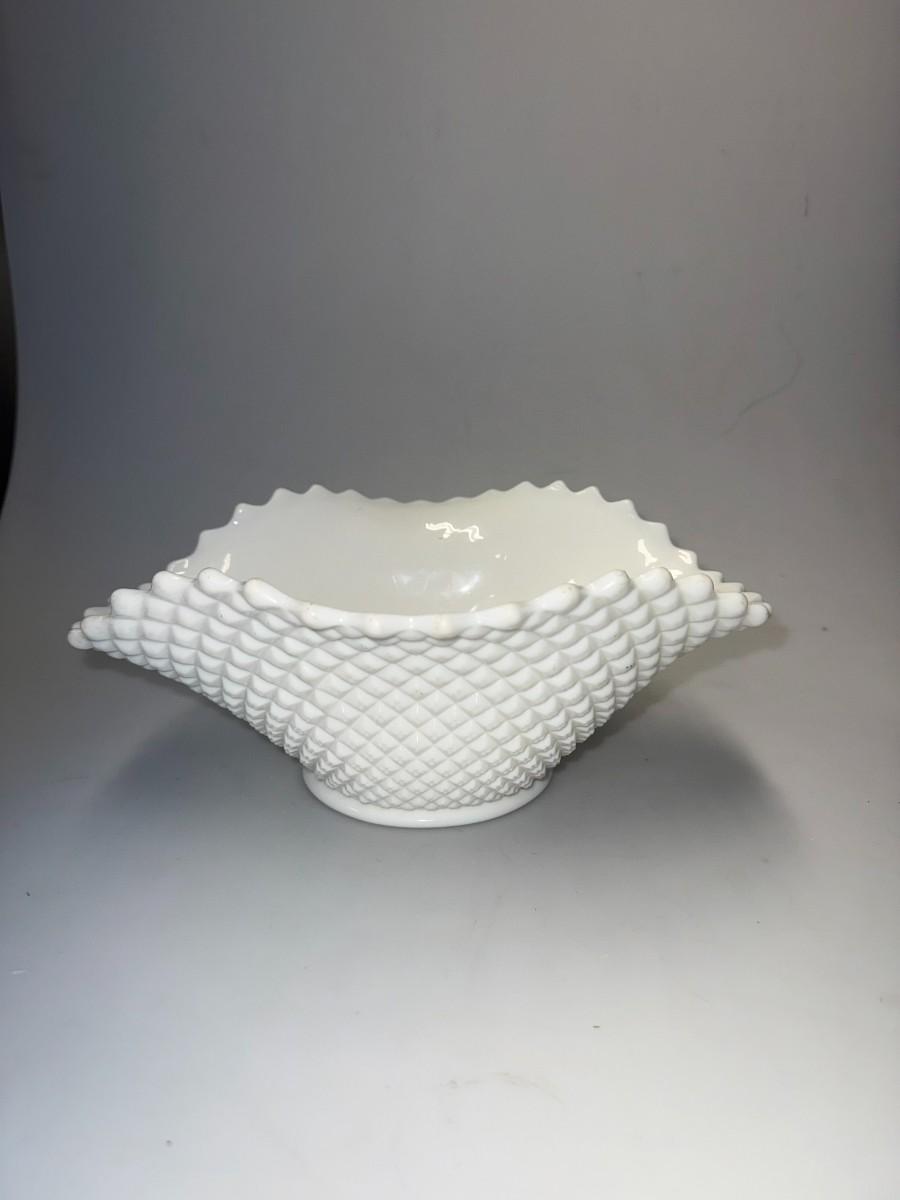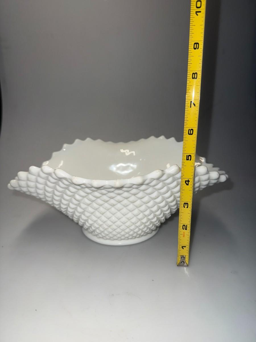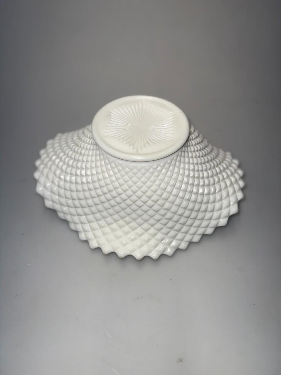 Vintage Westmoreland English Hobnail Milk Glass Oval Bowl, Diamond Point Pattern