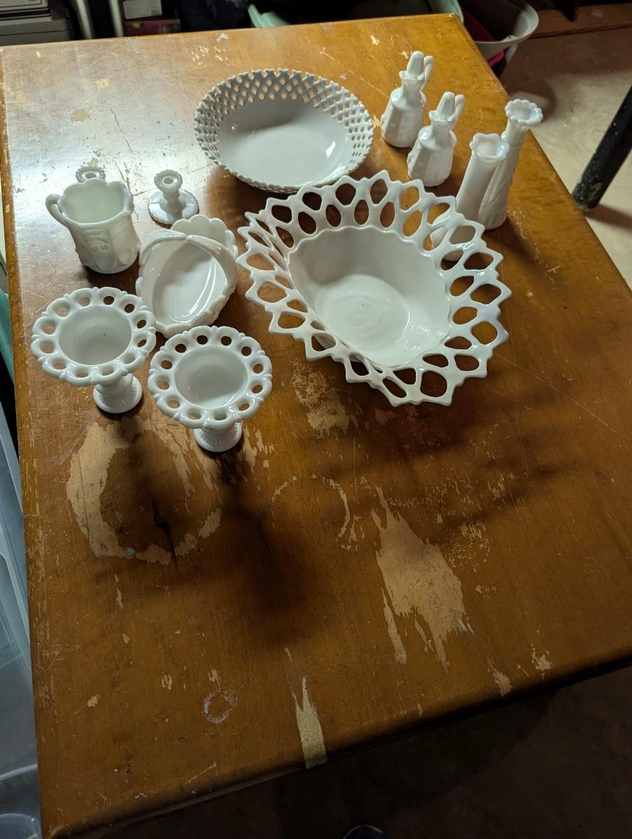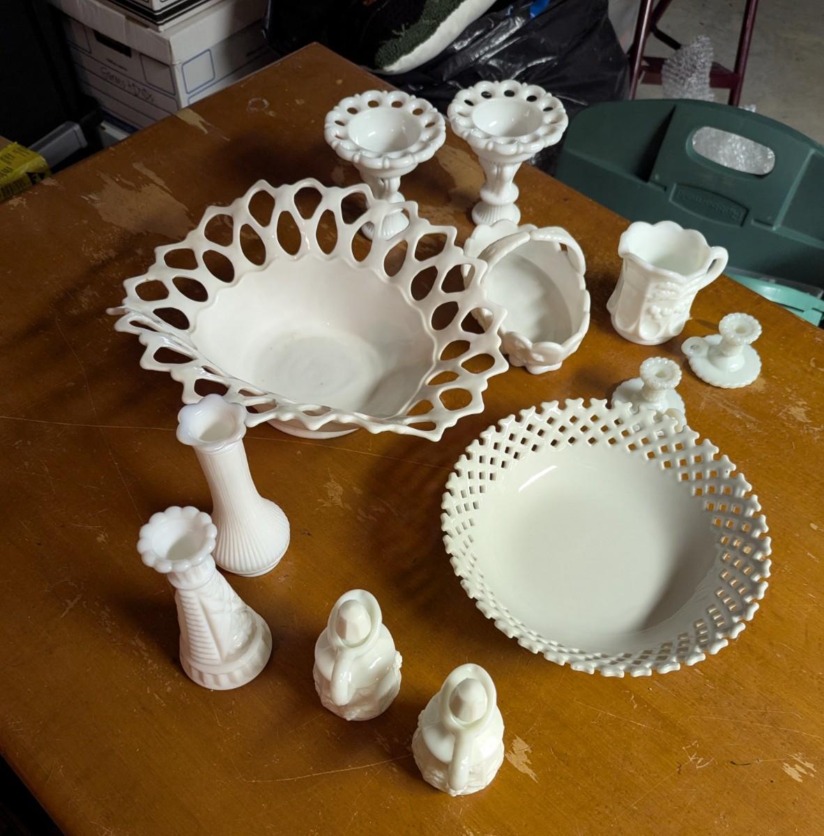 Vintage Westmoreland Glass White Milk Glass Dishes (B)