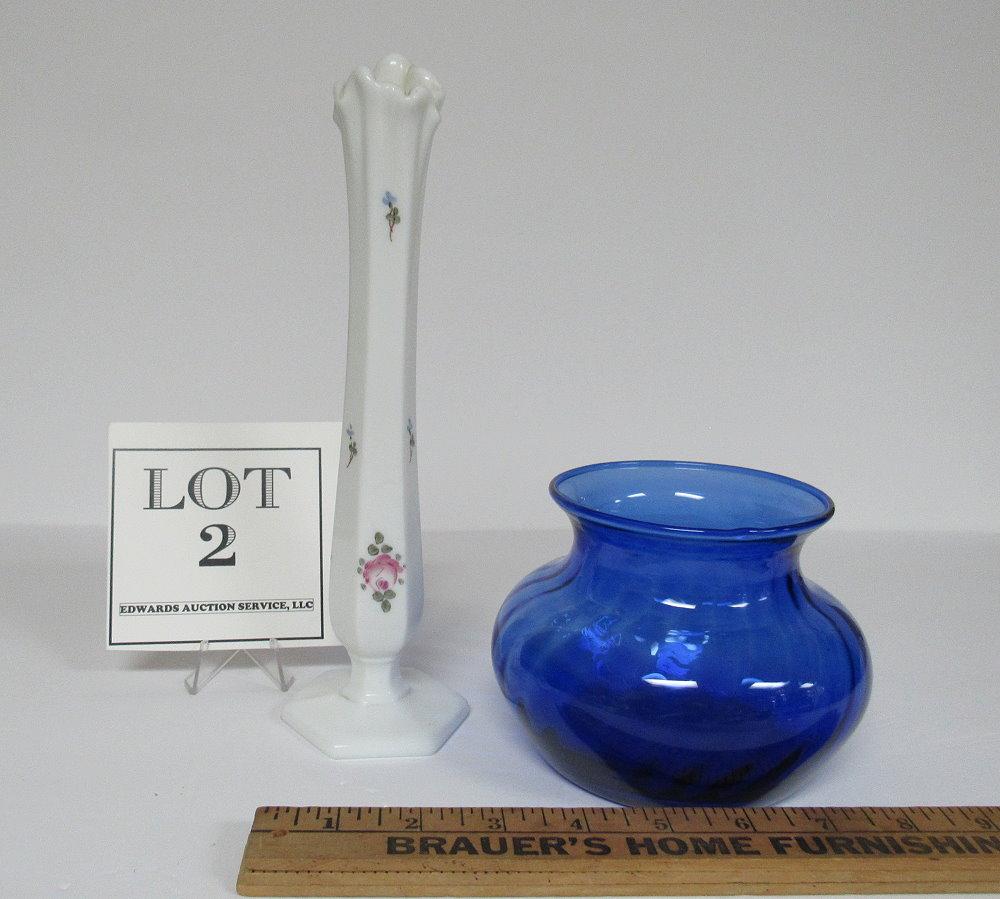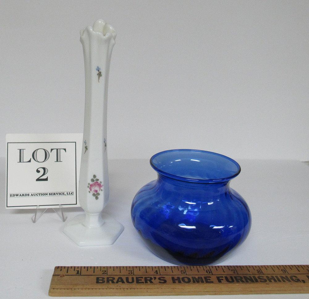 Vintage Westmoreland Hand Painted Bud Vase and Cobalt Blue Vase