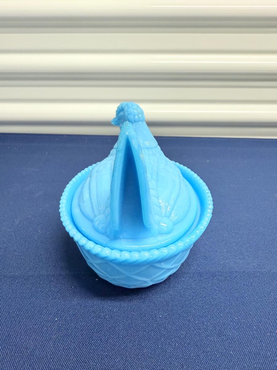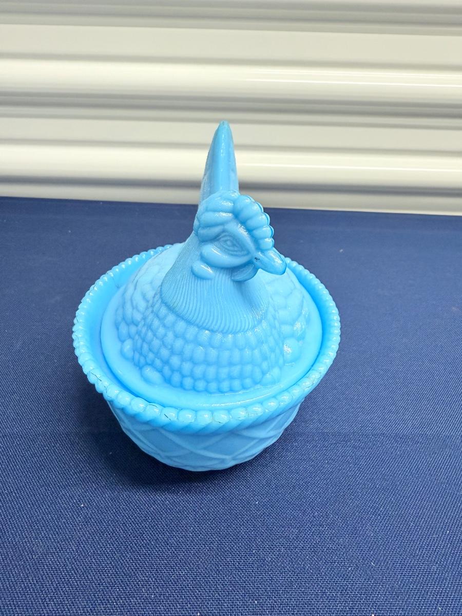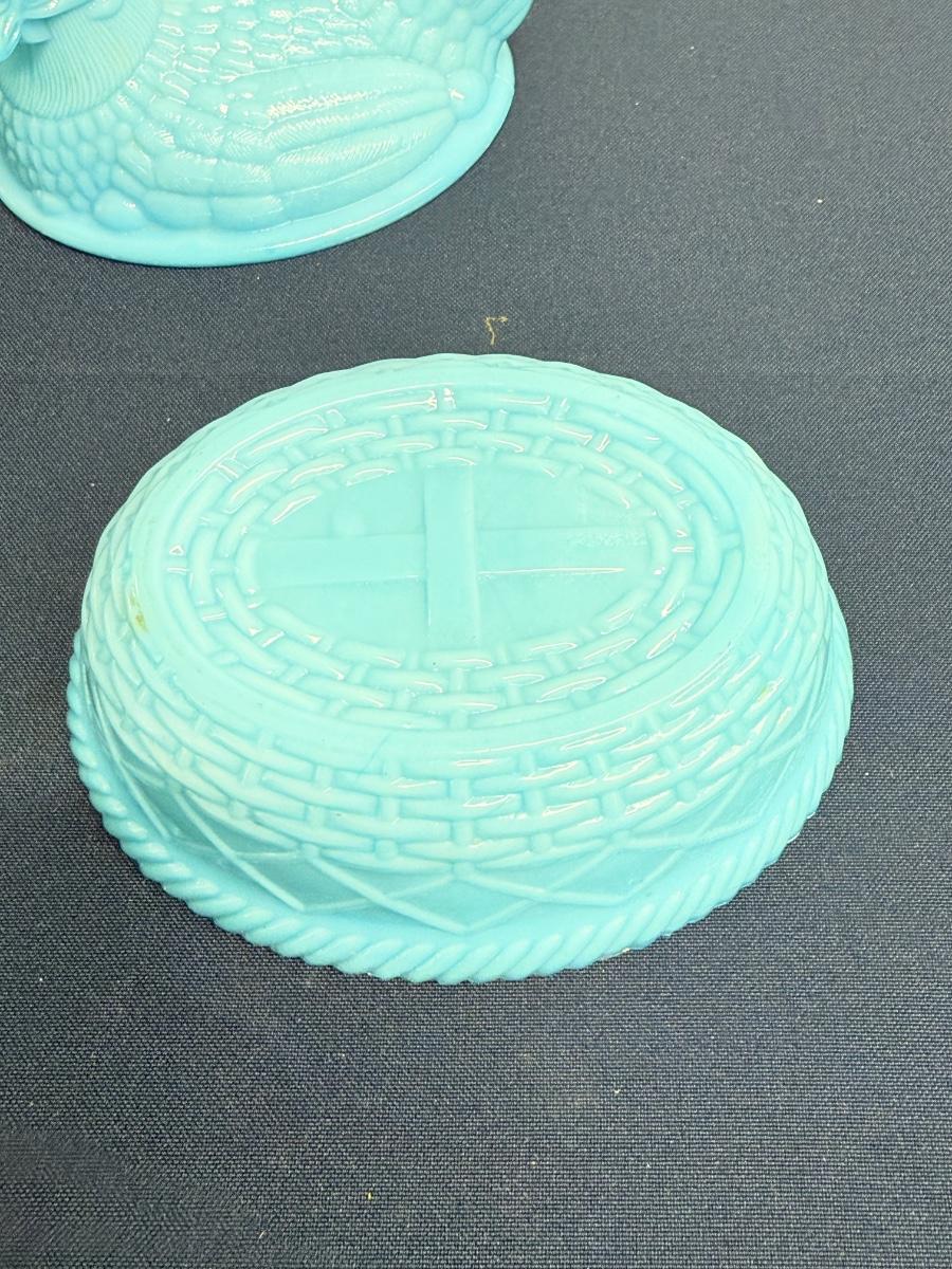 Vintage Westmoreland Hen on Nest Blue Milk Glass Covered Dish