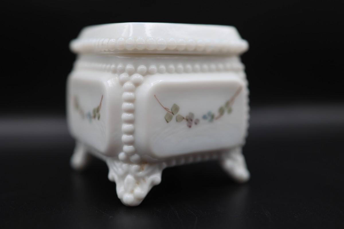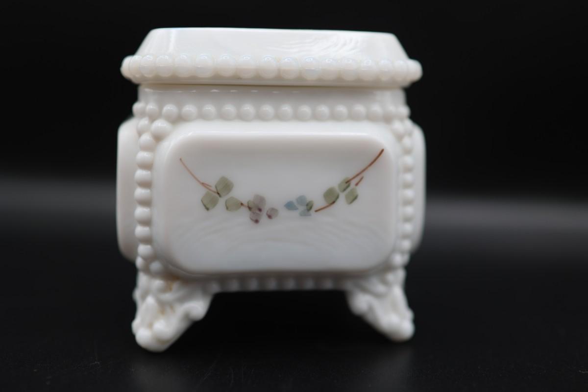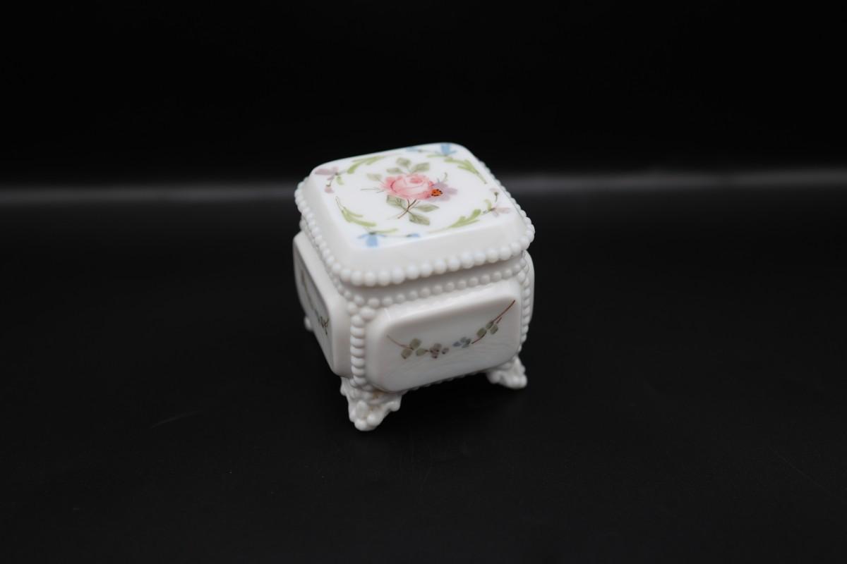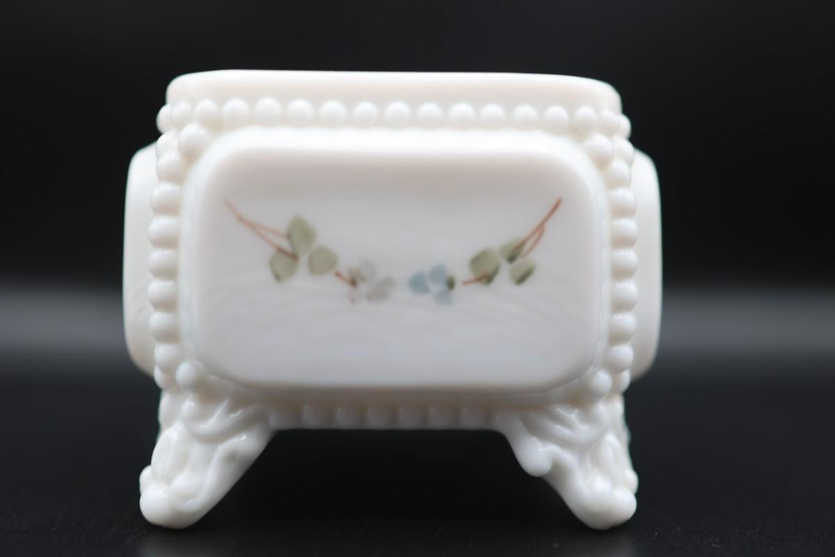 Vintage Westmoreland Milk Glass Trinket Box Square Footed with Roses
